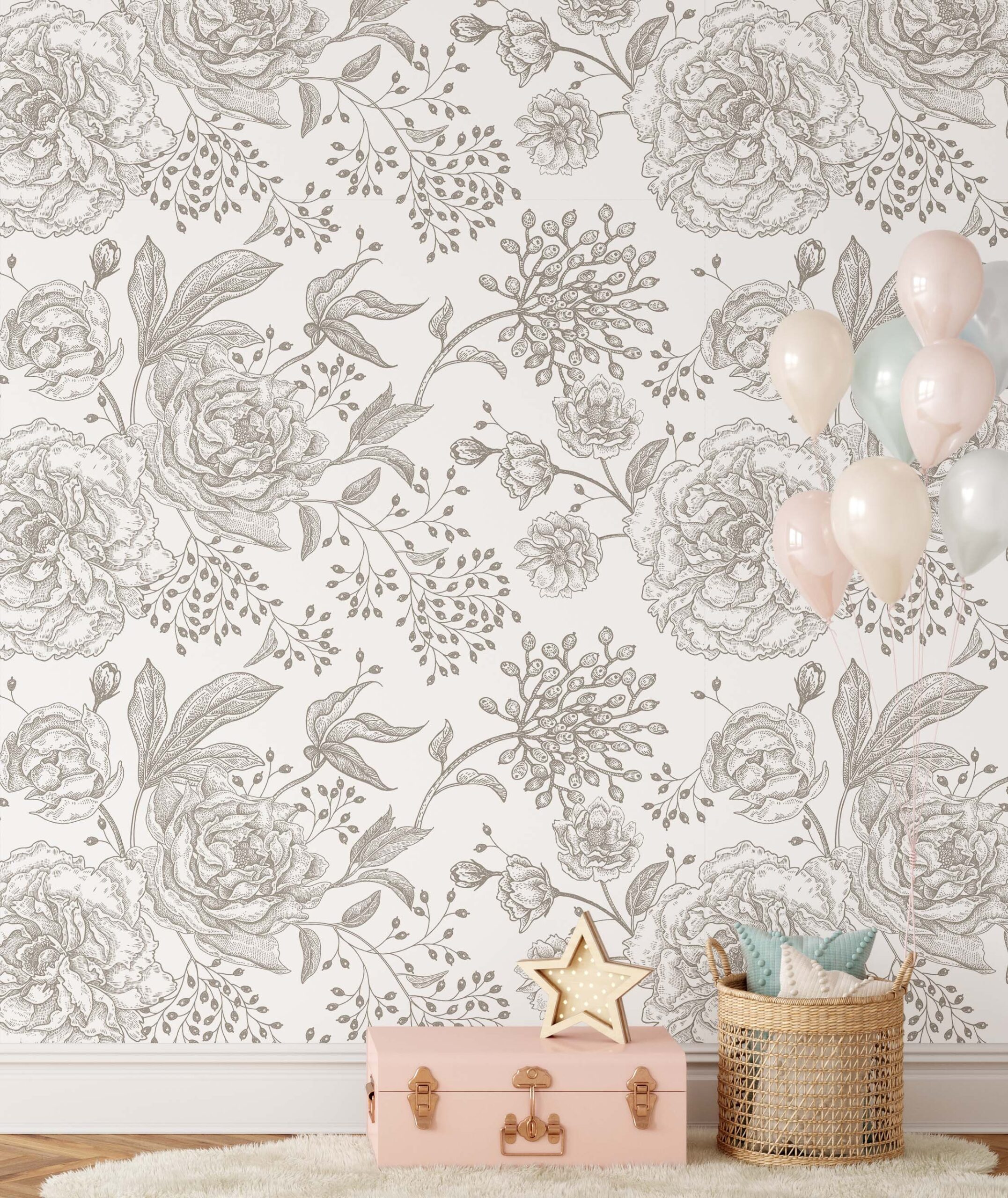 Peony Wallpaper Flowers Leaf Berry Graphic Greenery Peel and Stick Removable Self Adhesive Botanical Mural Home Decor, NW34