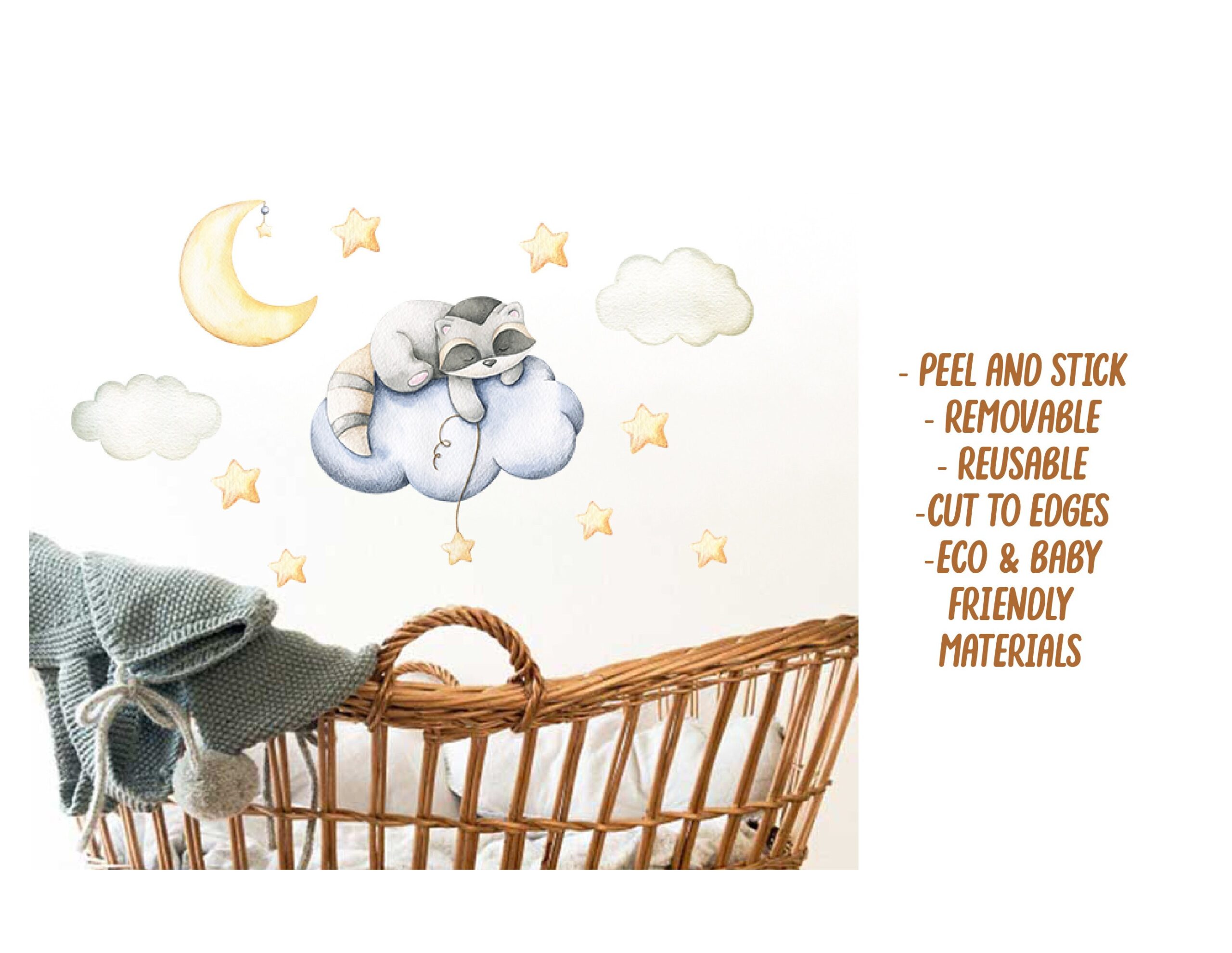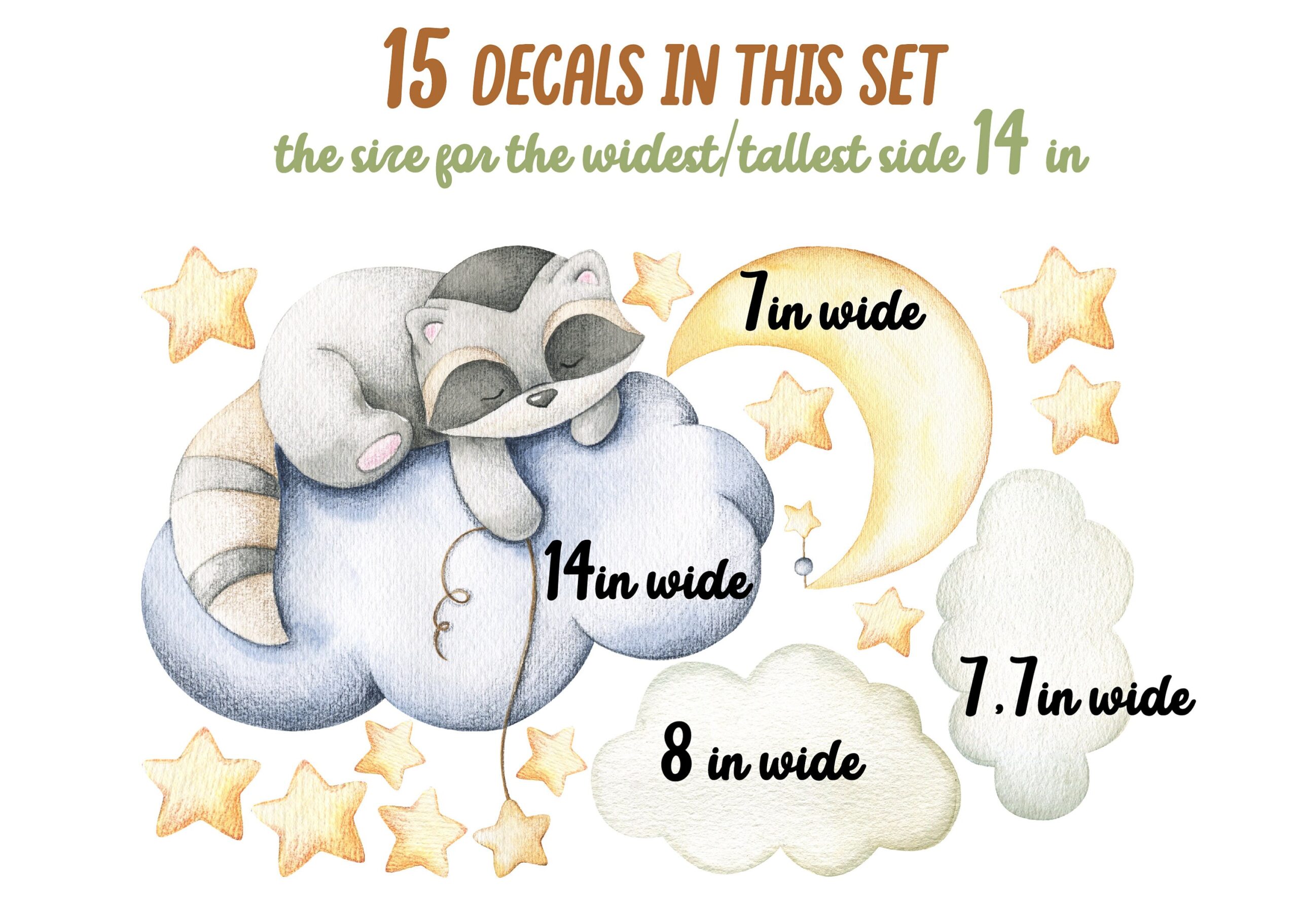 Raccoon Nursery Sleeping Wall Decals – What’s Included