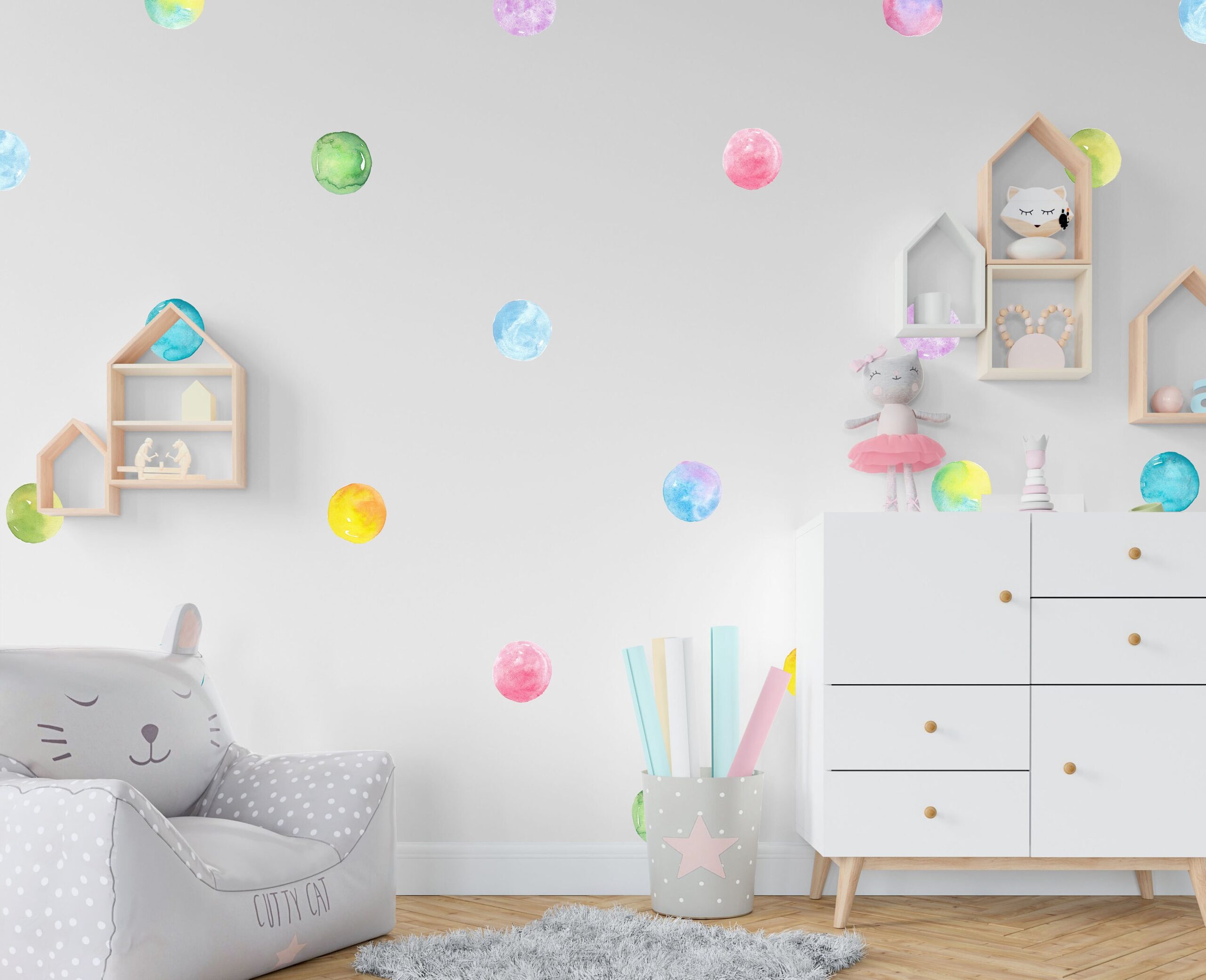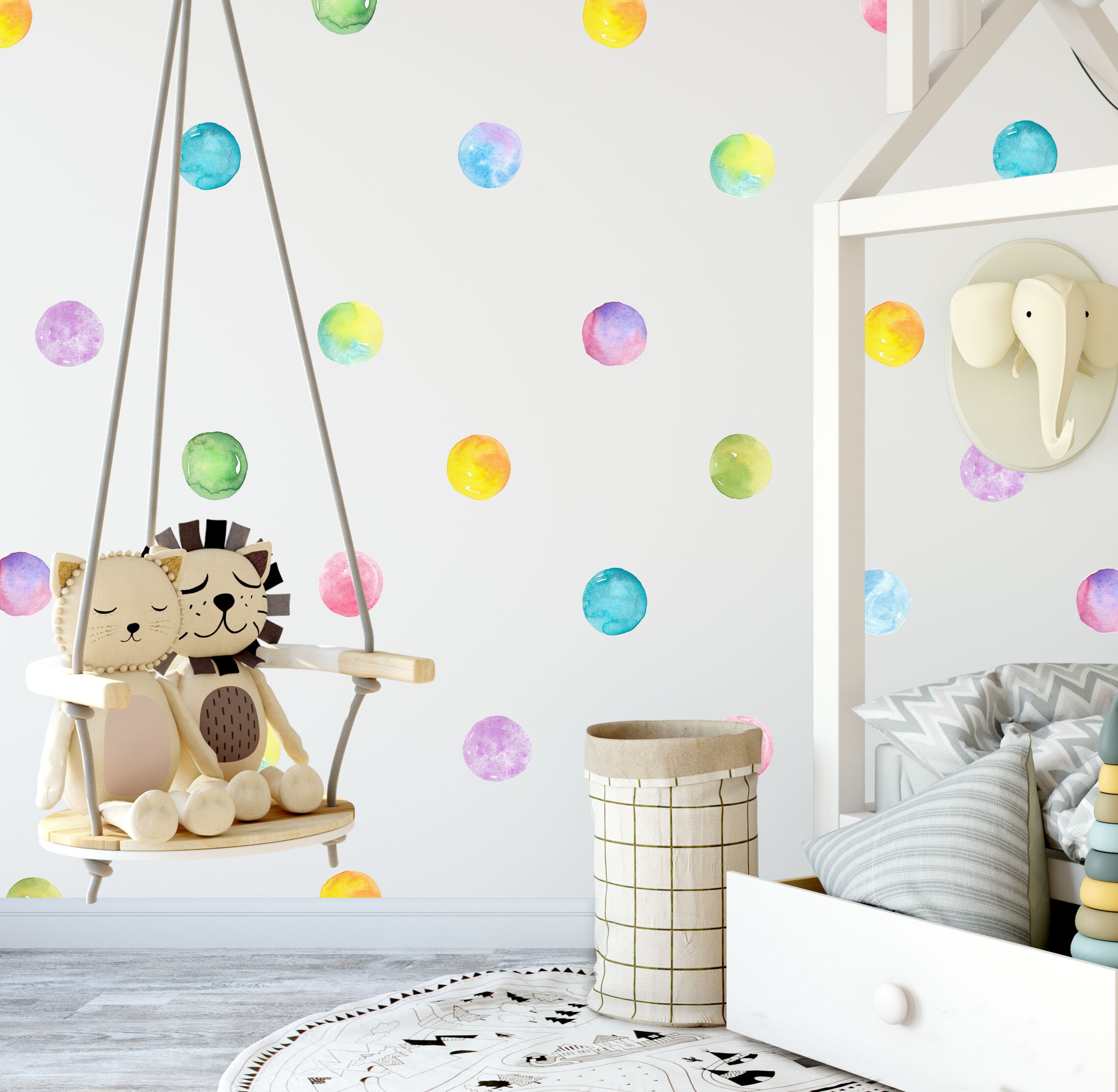 🌈 Discover our rainbow polka dots wall decals — a beautiful design that instantly elevates any room. Furthermore, each individual piece can be placed wherever you like, so you can create a truly unique arrangement.