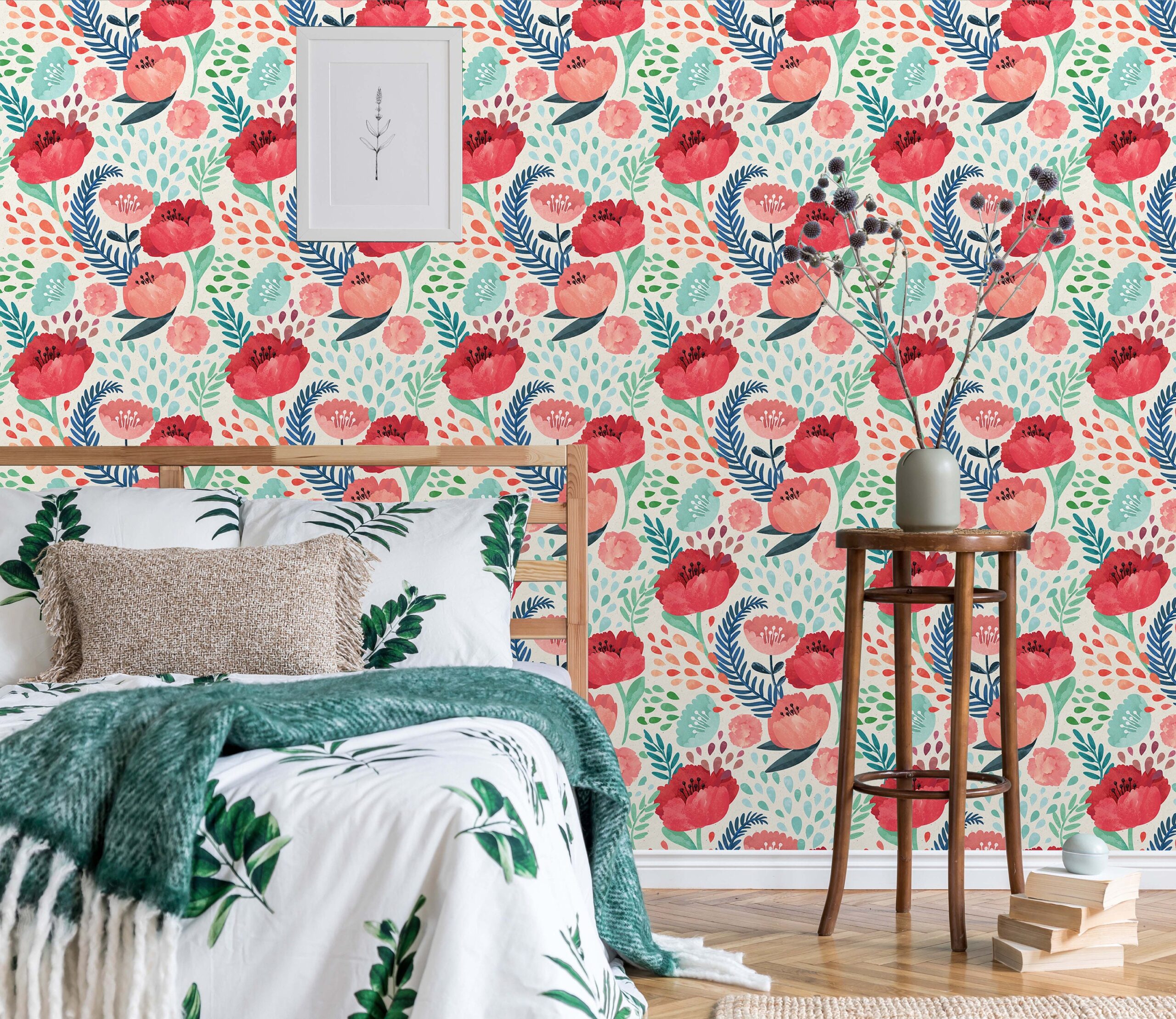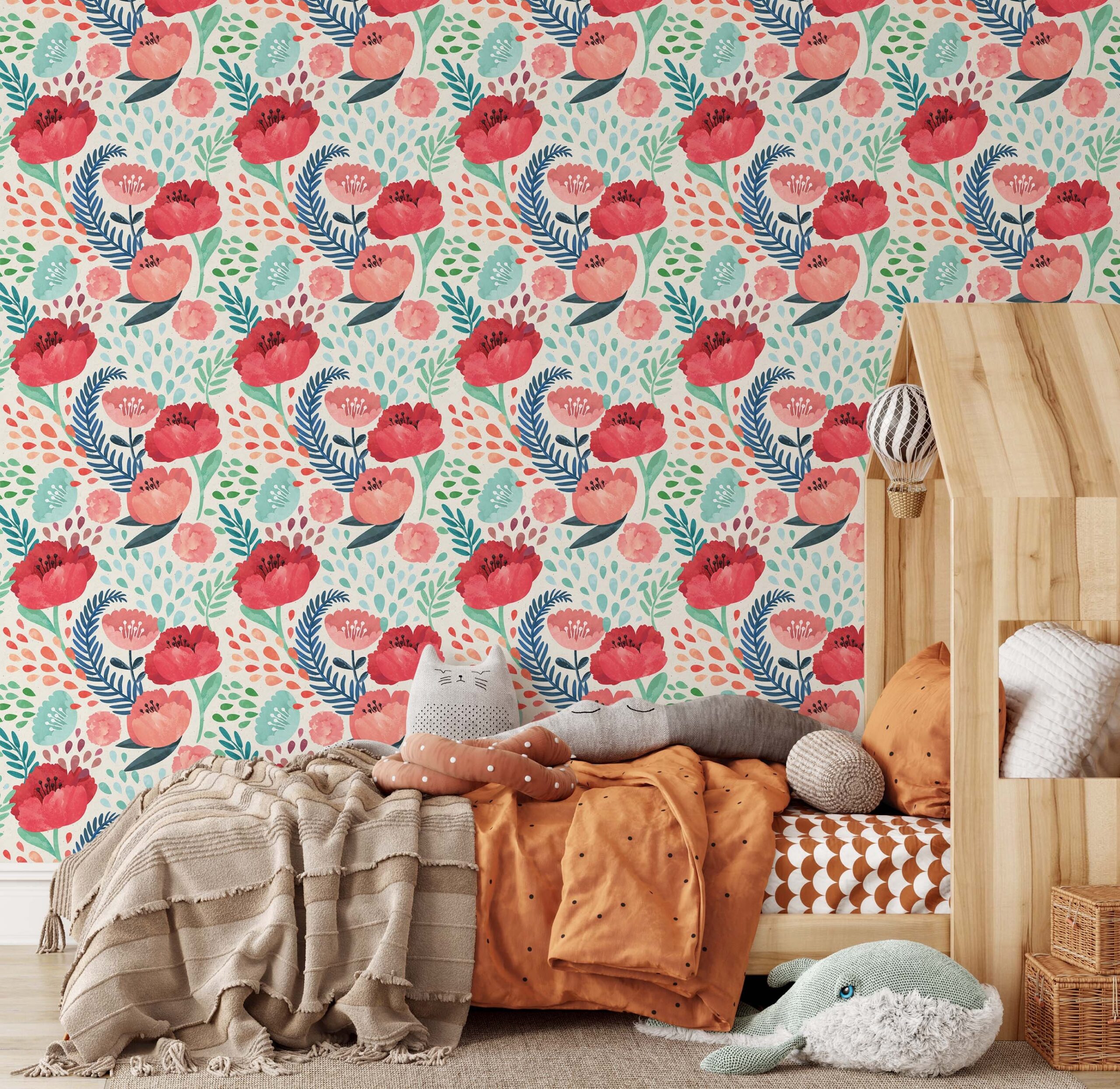🖼️ Discover our red floral wallpaper wall decals — a beautiful design that instantly elevates any room. Furthermore, each individual piece can be placed wherever you like, so you can create a truly unique arrangement.