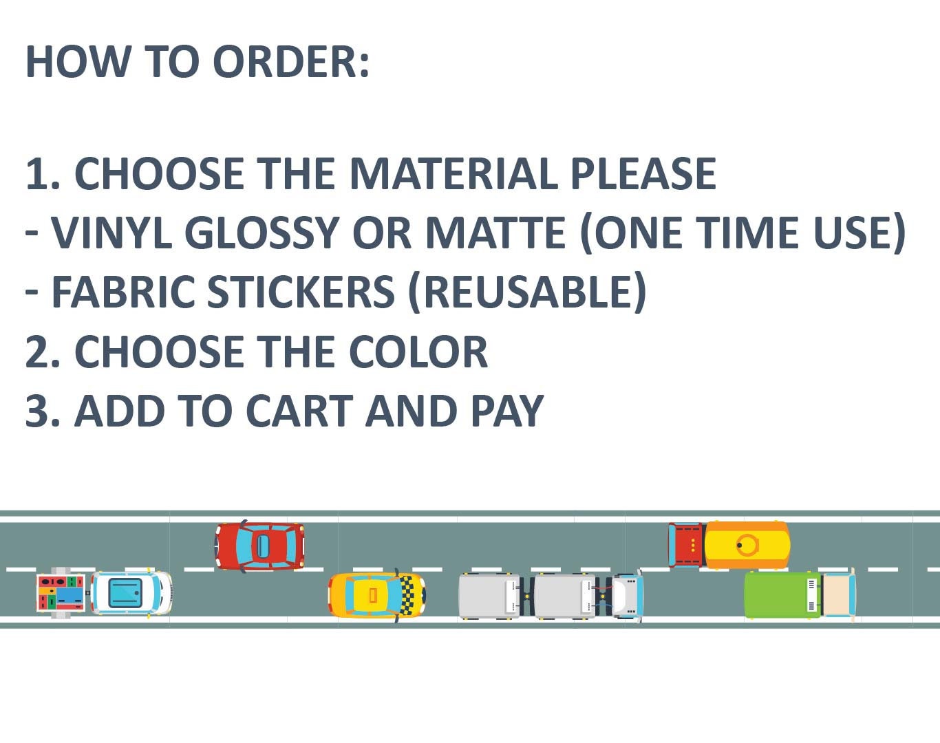 Our road border peel wall decals in vinyl are made with premium 3M and Oracal vinyl with a matte finish. They apply easily and remove cleanly without damaging your walls. Moreover, they work well on flat walls, slightly textured surfaces, doors, windows, and furniture.