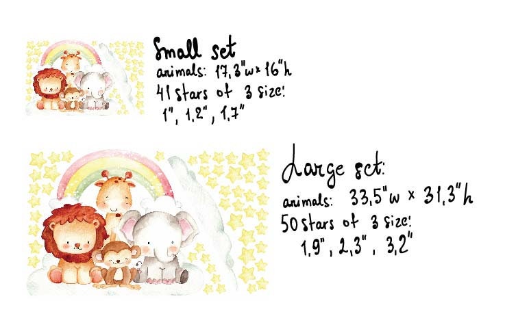 These safari animals elephant wall decals come in two set sizes — small and large. Therefore, you can choose the amount that best fits your wall space. Additionally, custom sizes are available on request.