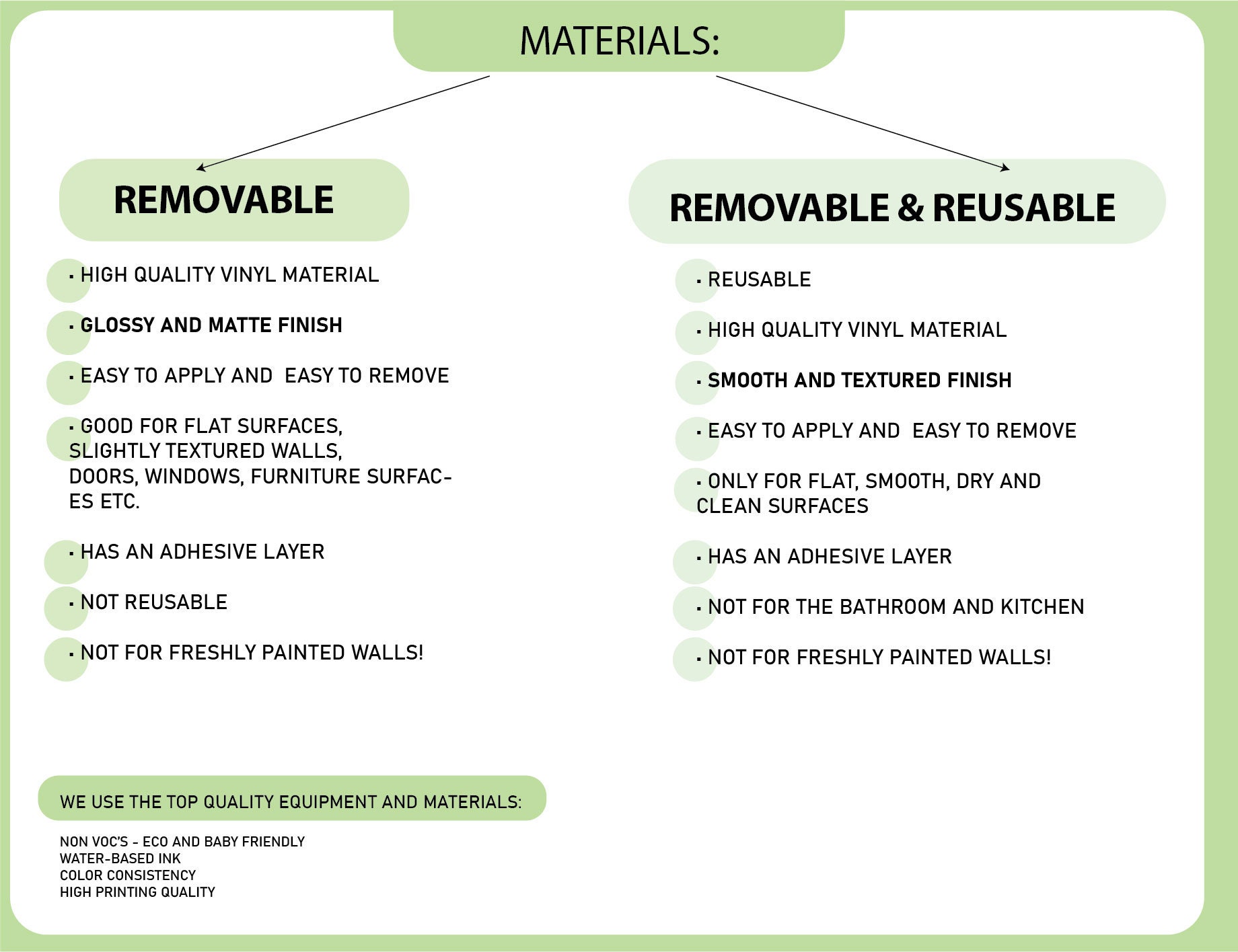 All vinyl decals come with a matte finish, which gives a clean and natural look on any wall. As a result, the design blends beautifully into your interior.