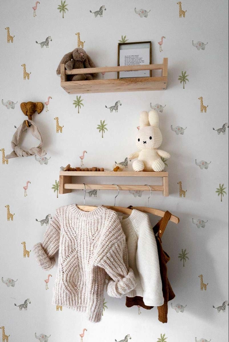 Safari Animals Wall Decals Jungle Palm Giraffe Zebra Elephant Flamingo Stickers