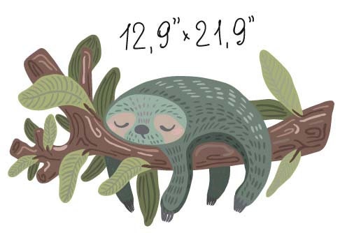 Our sloth jungle animal wall decals in vinyl are made with premium 3M and Oracal vinyl with a matte finish. They apply easily and remove cleanly without damaging your walls. Moreover, they work well on flat walls, slightly textured surfaces, doors, windows, and furniture.