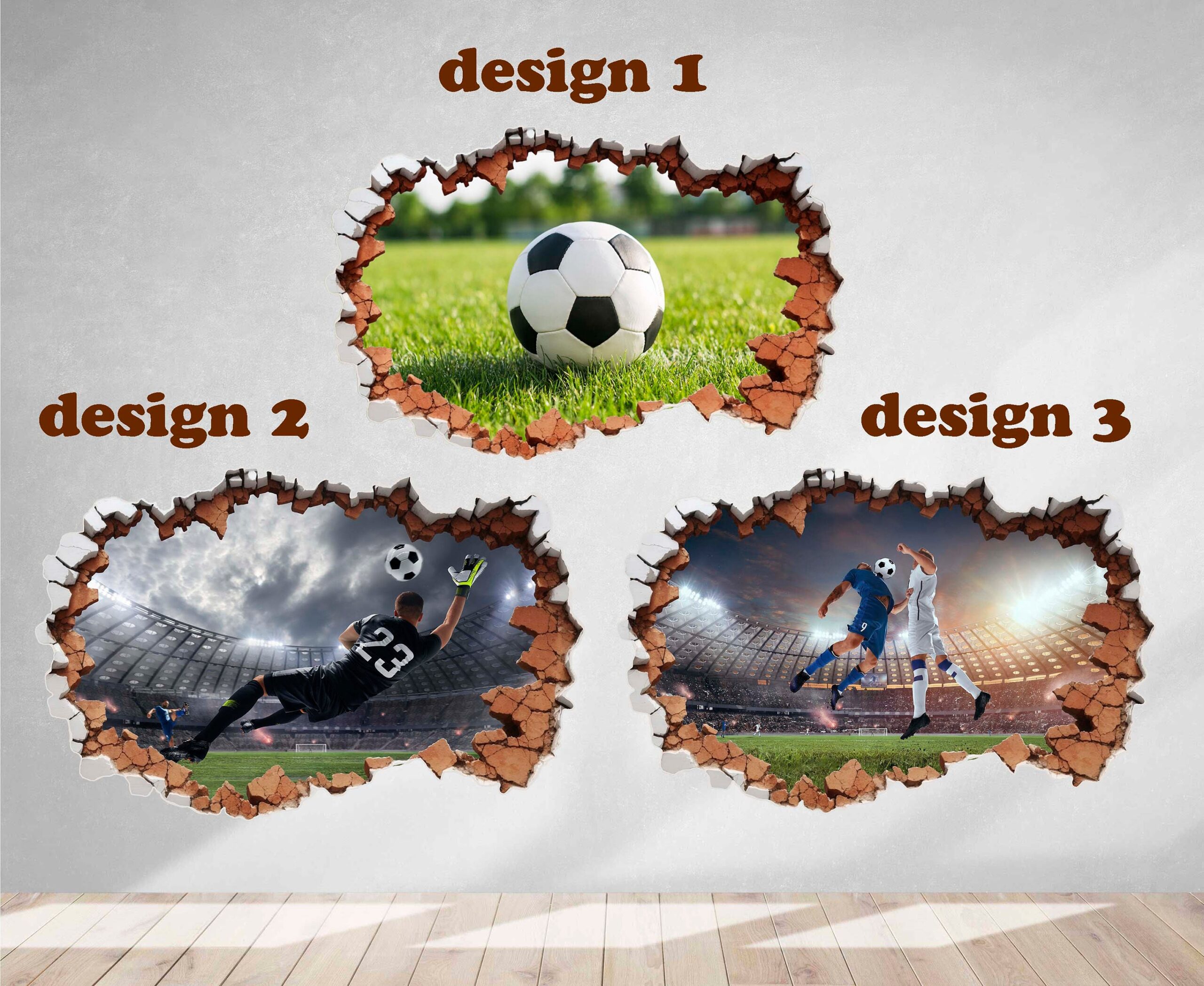 Soccer Wall Decal Ball Stadium 3D Hole Sport Sticker Kids Room Decor Vinyl