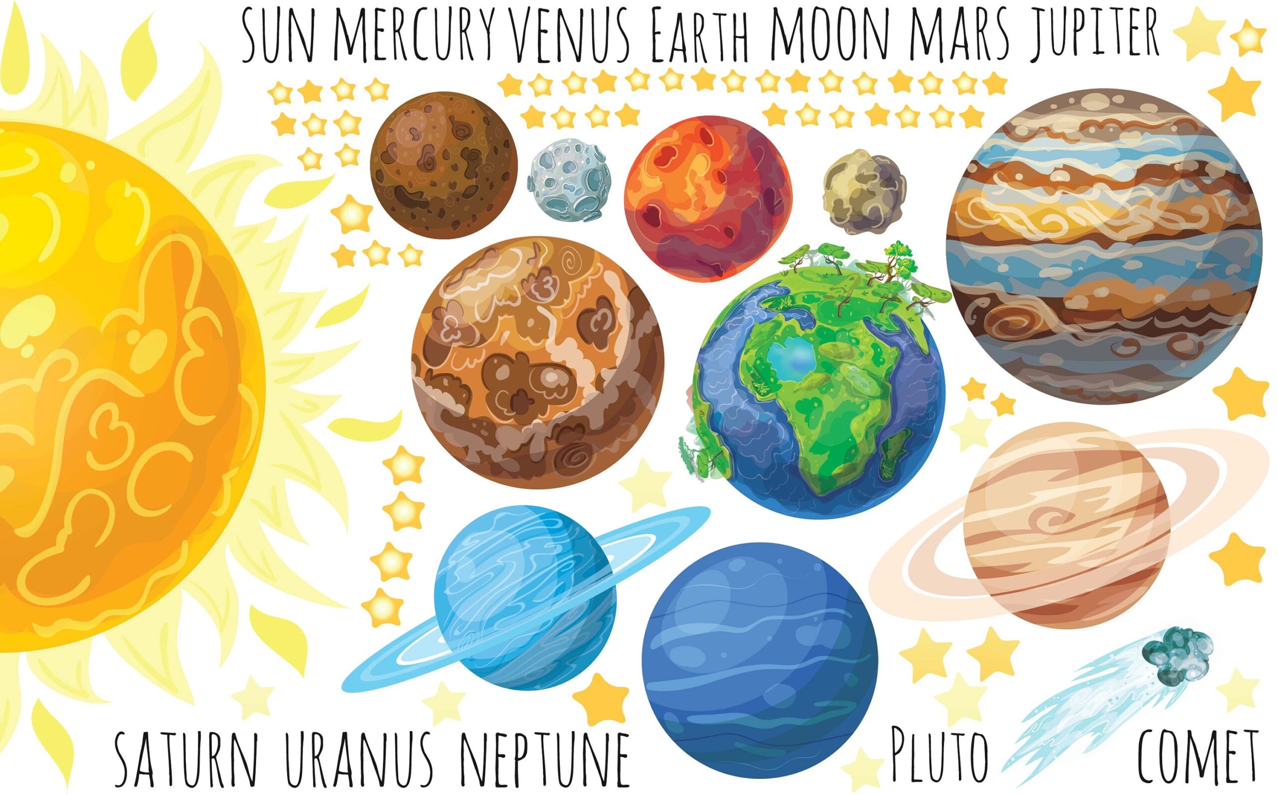 These solar system kids wall decals are pre-cut and ready to apply. In addition, detailed installation instructions are included with every order.