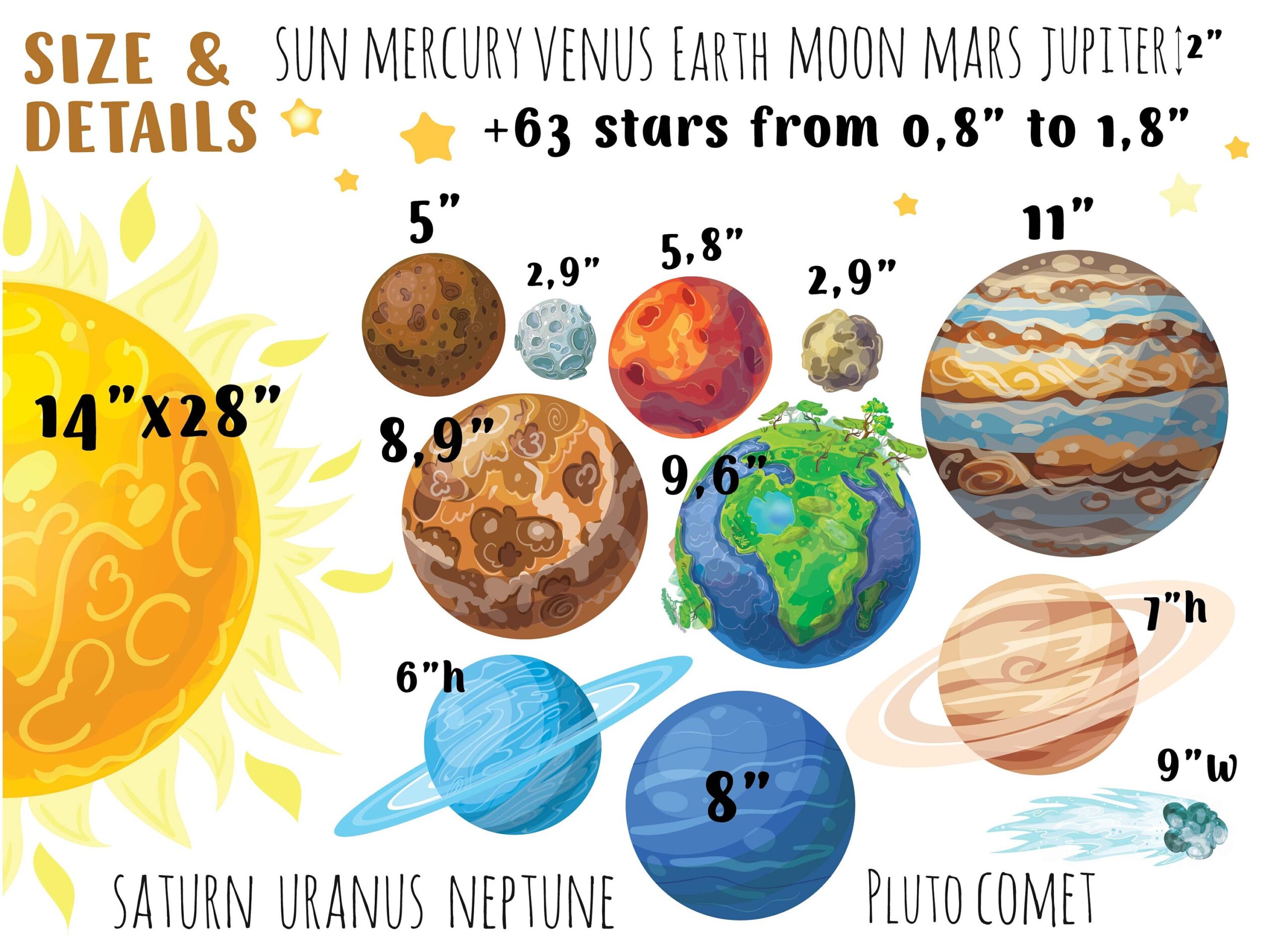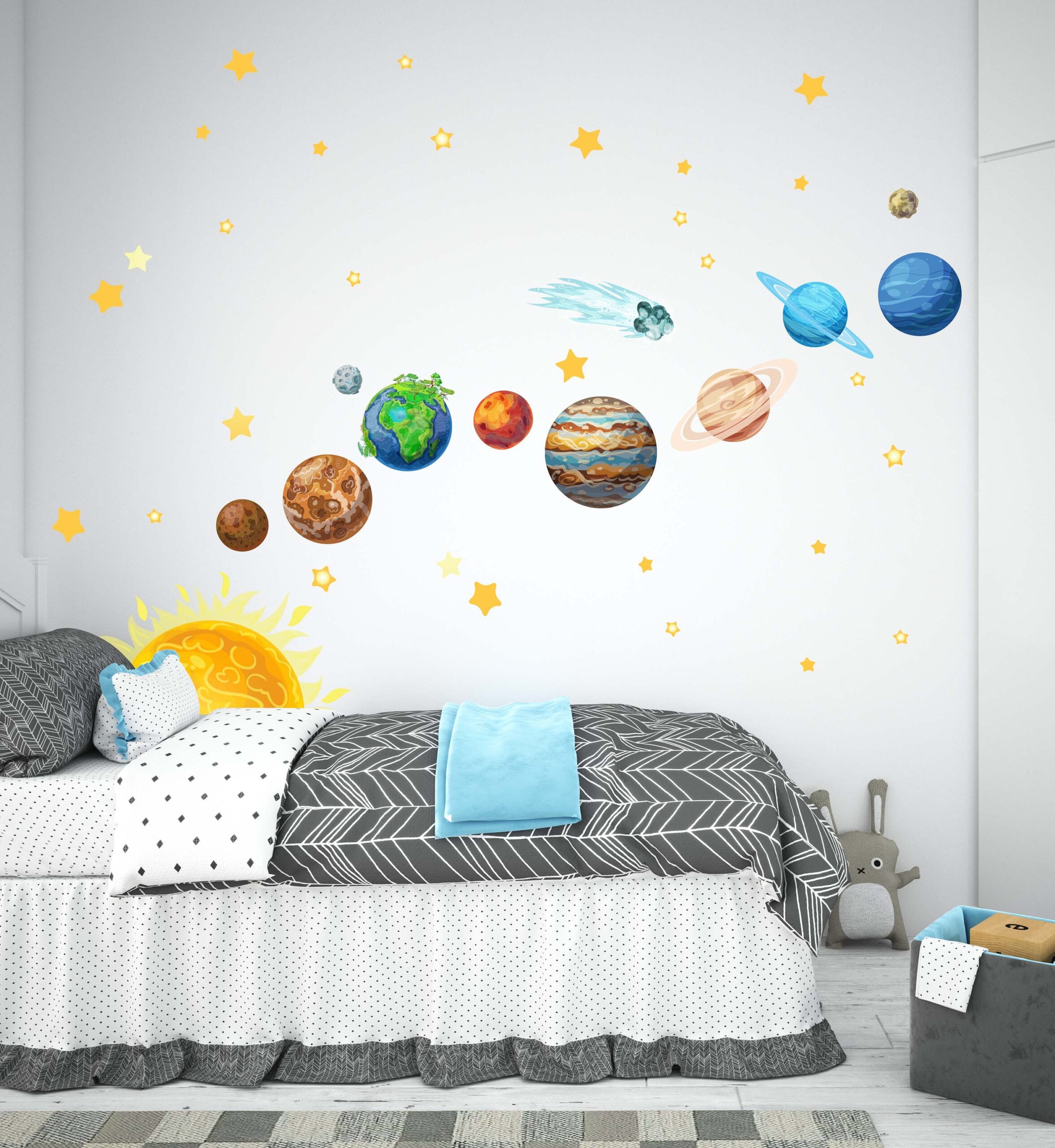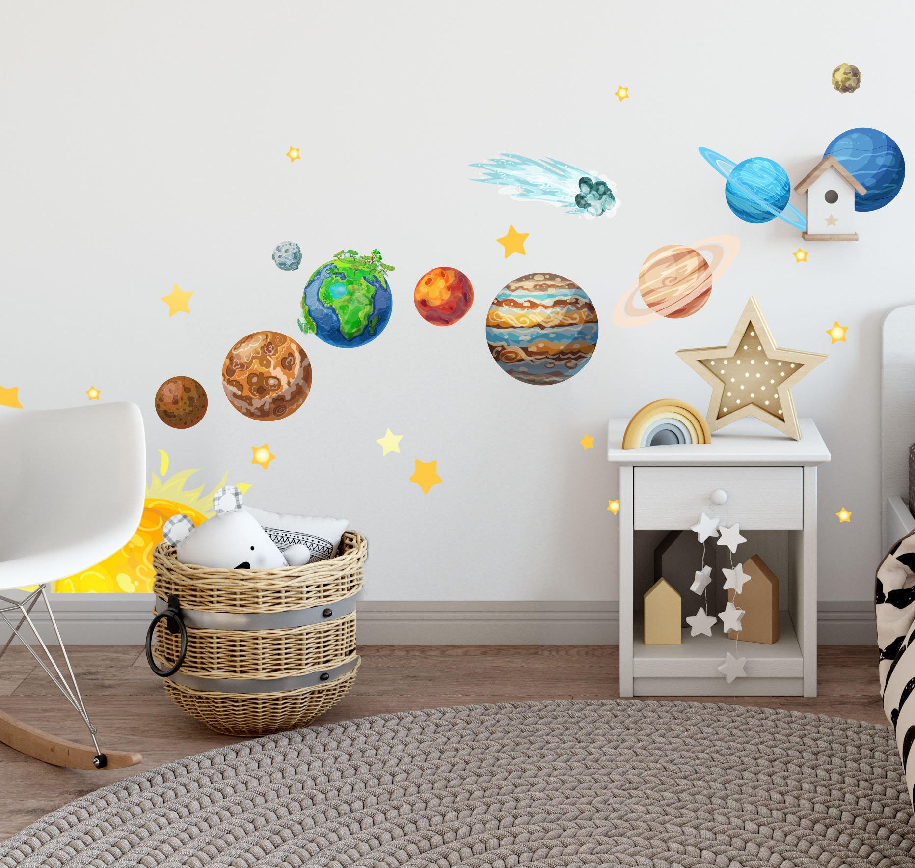 👶 Add stunning solar system kids wall decals to your space — a beautiful design that instantly transforms any wall. Furthermore, each individual piece can be placed wherever you like for a fully custom look.