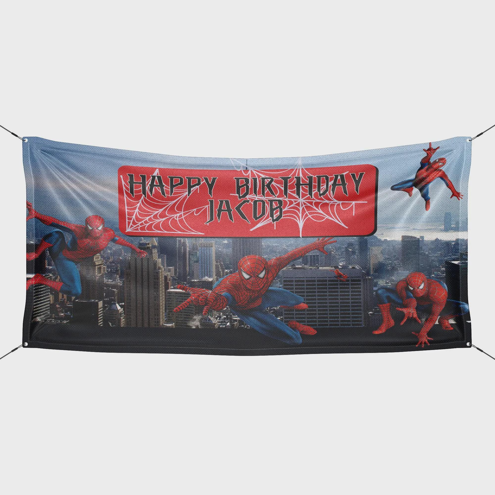 Swing into action with a personalized Spider-Man birthday banner! Perfect for your superhero-themed celebration, this custom name party backdrop adds excitement and fun to any Spider-Man fan’s special
