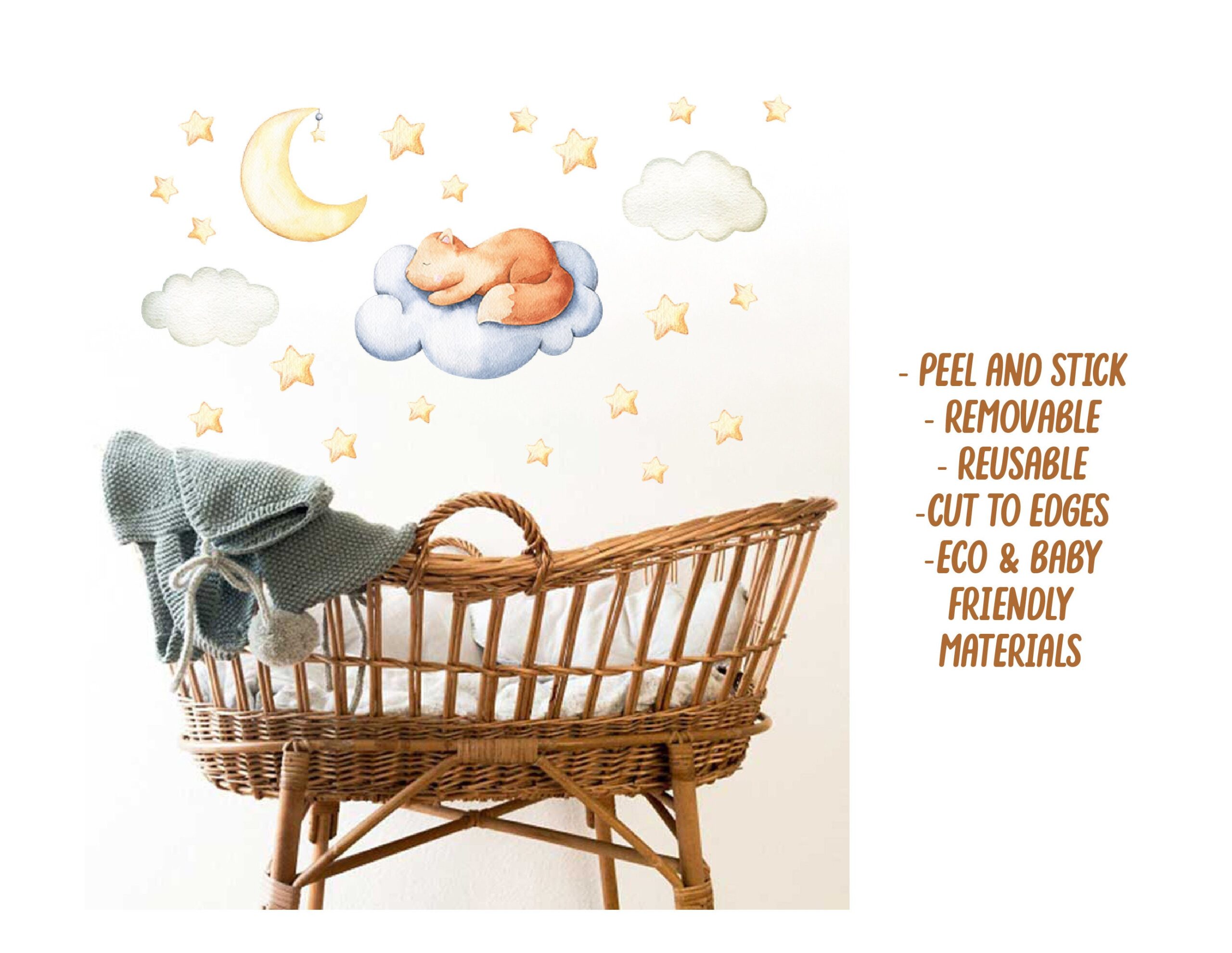 The fabric version of these squirrel nursery stars wall decals can be repositioned up to 10 times without losing adhesion. Additionally, it leaves zero sticky residue when removed — making it ideal for rental spaces and kids’ rooms.