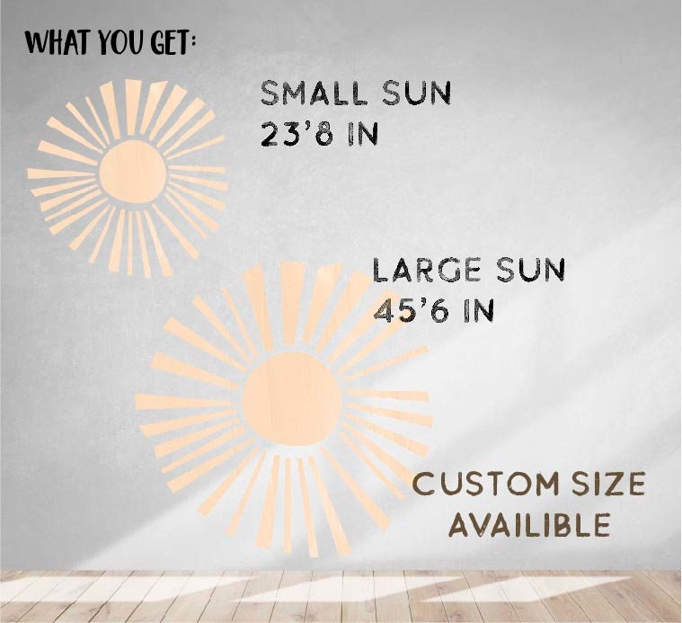 Our sun boho block wall decals in vinyl are made with premium 3M and Oracal vinyl with a matte finish. They apply easily and remove cleanly without damaging your walls. Moreover, they work well on flat walls, slightly textured surfaces, doors, windows, and furniture.