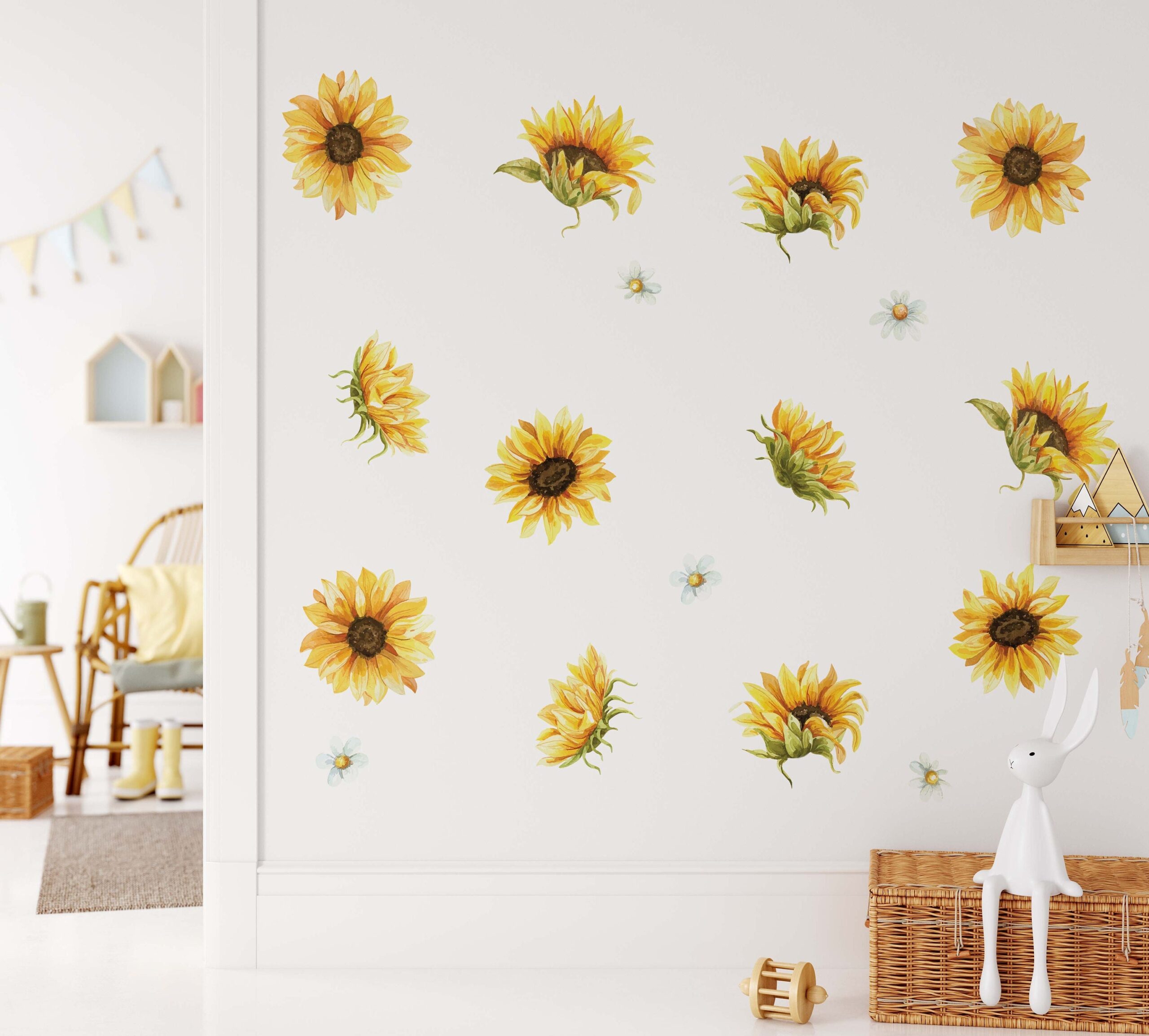 Sunflower Daisy Wall Decals Yellow Flowers Nursery Room Decor Chamomile Stickers