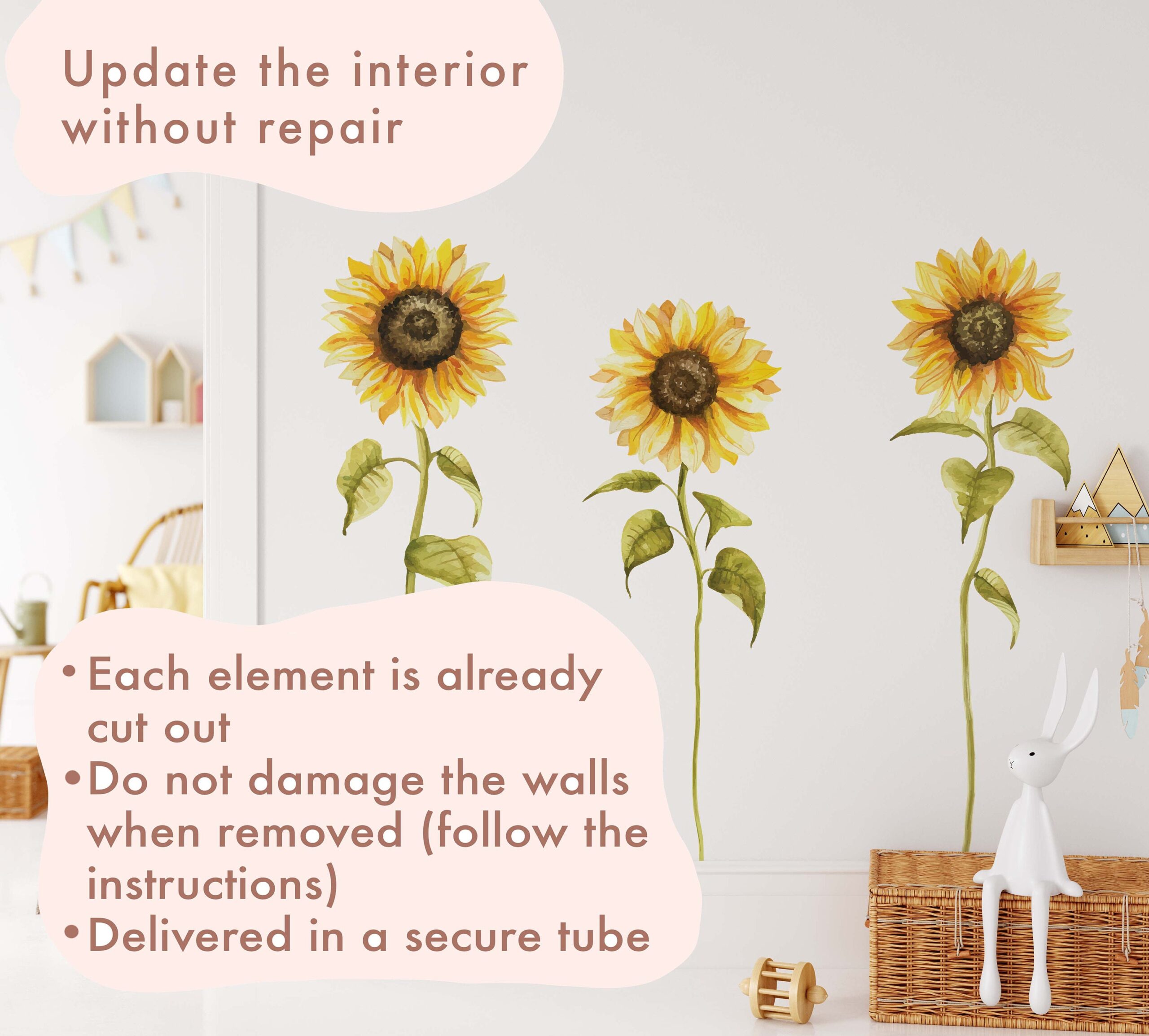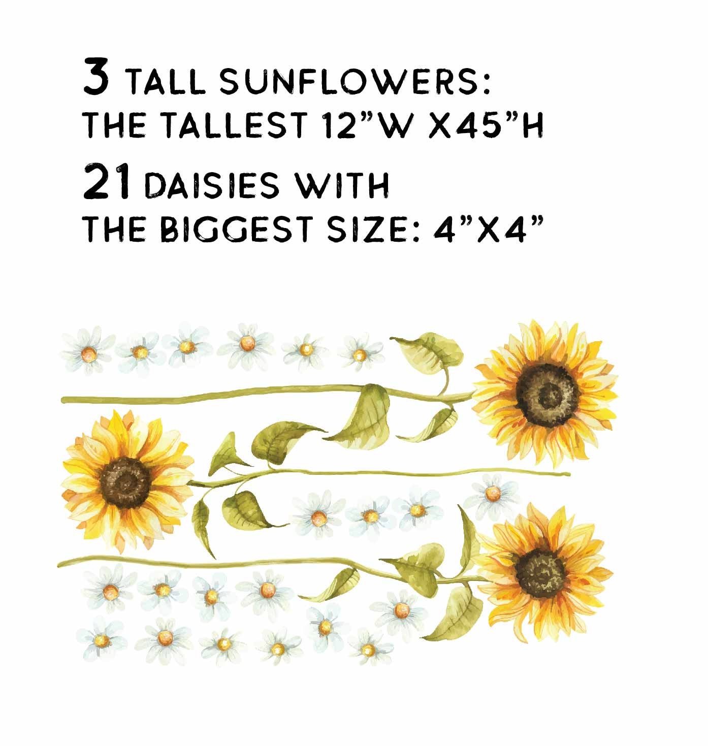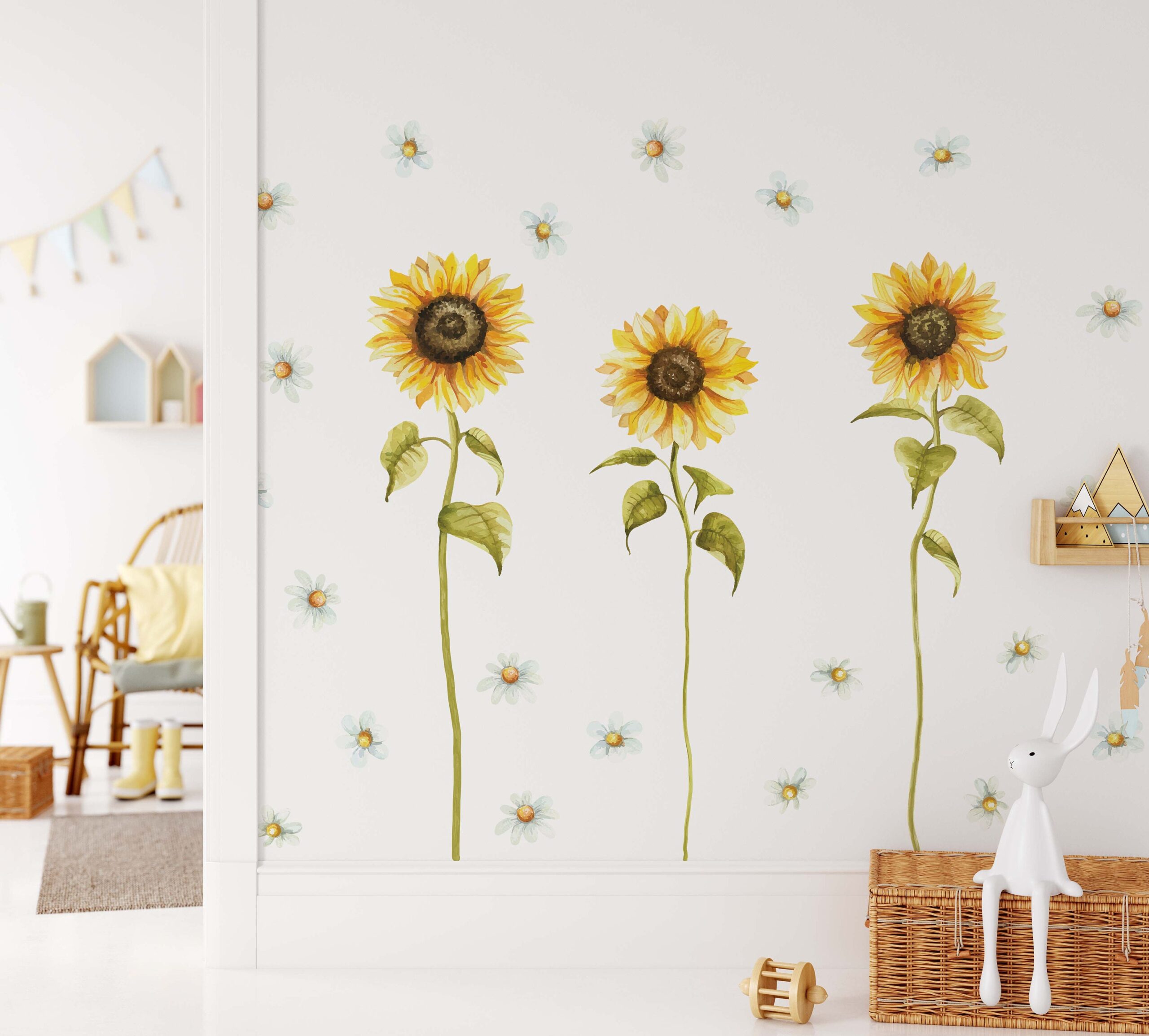 👶 Add stunning tall sunflower daisy wall decals to your space — a beautiful design that instantly transforms any wall. Furthermore, each individual piece can be placed wherever you like for a fully custom look.