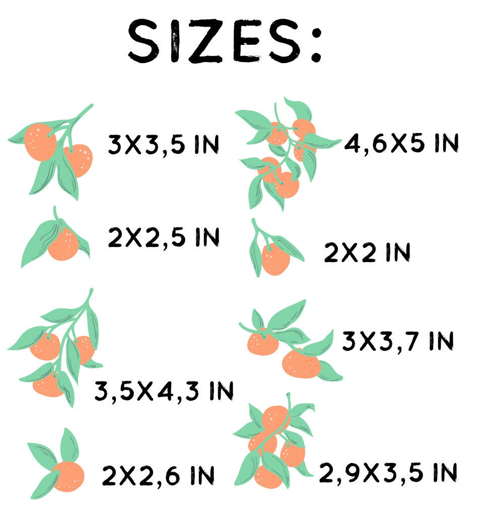 These tangerines mandarins wall decals come in two set sizes — small and large. Therefore, you can choose the amount that best fits your wall space. Additionally, custom sizes are available on request.