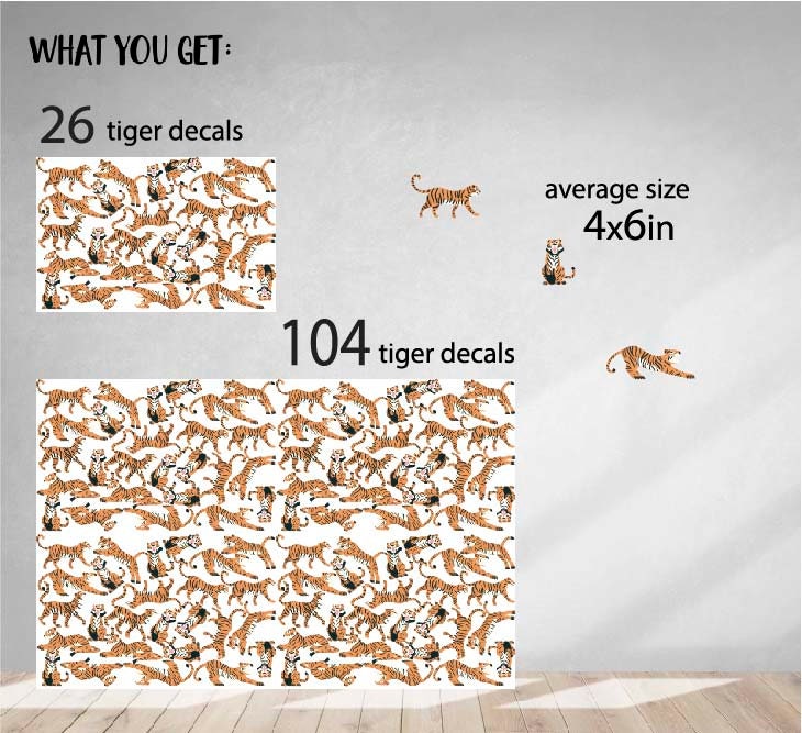 These tigers cat wild wall decals come in two set sizes — small and large. Therefore, you can choose the amount that best fits your wall space. Additionally, custom sizes are available on request.