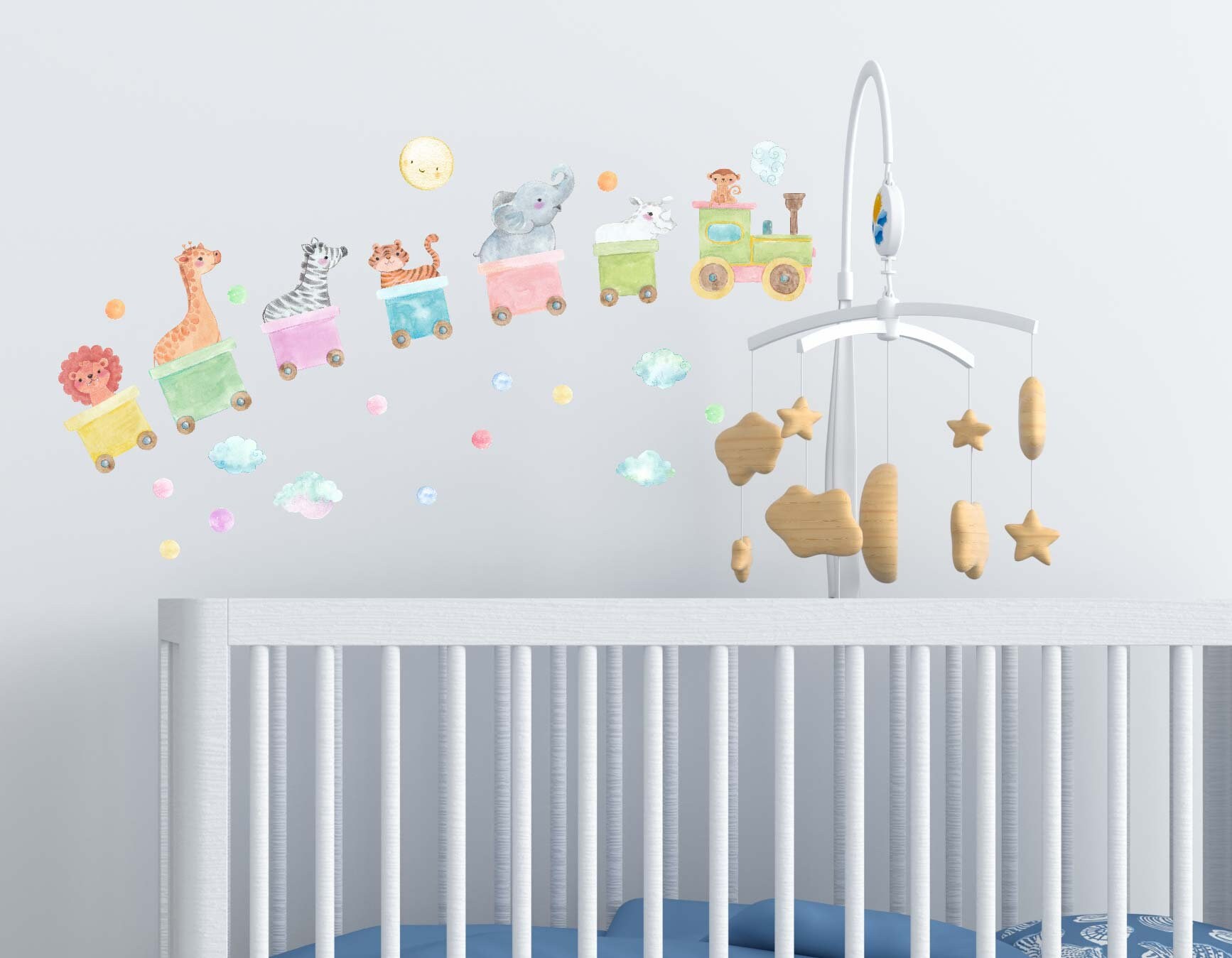 👶 Add stunning train nursery jungle wall decals to your space — a beautiful design that instantly transforms any wall. Furthermore, each individual piece can be placed wherever you like for a fully custom look.