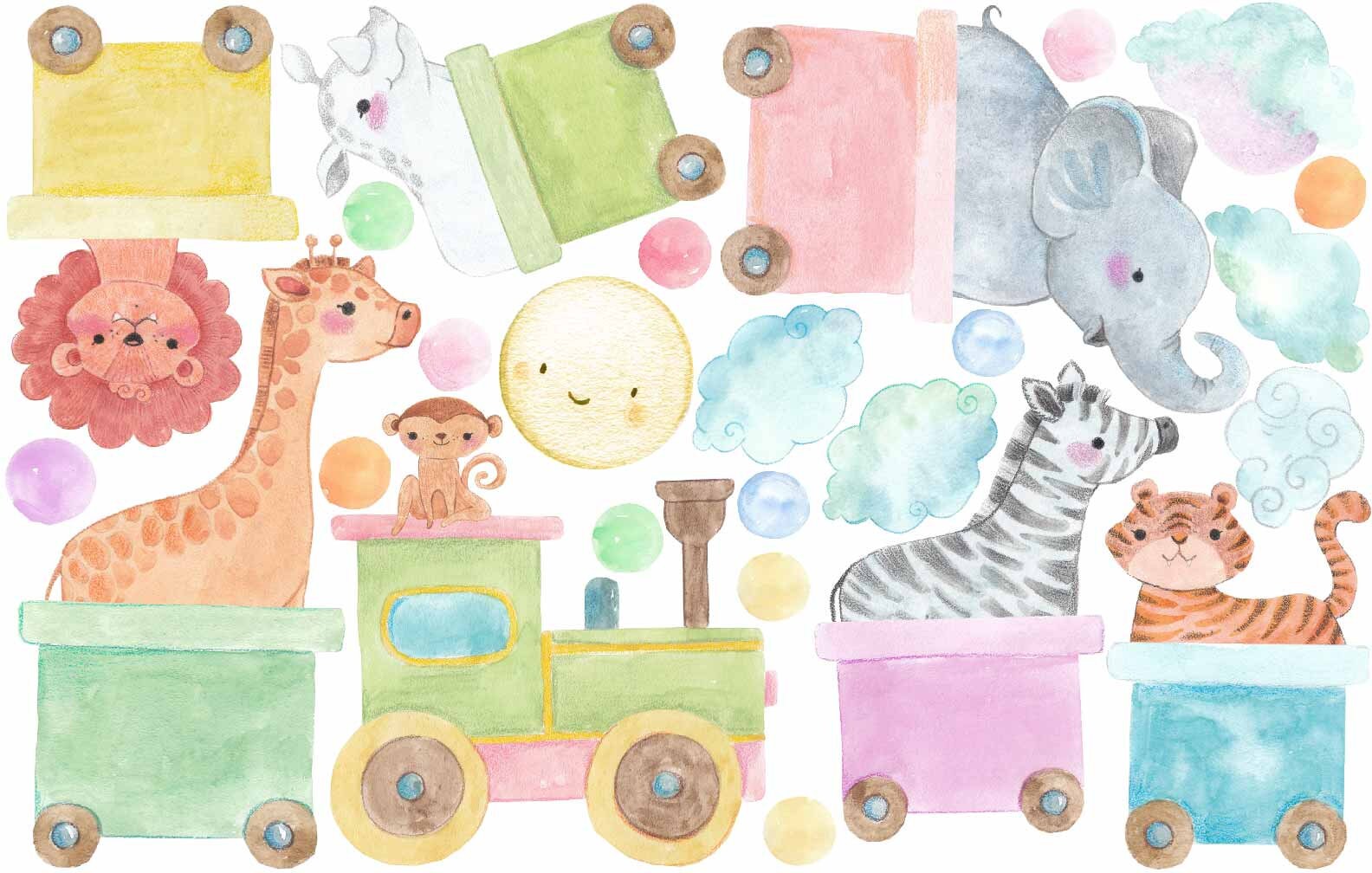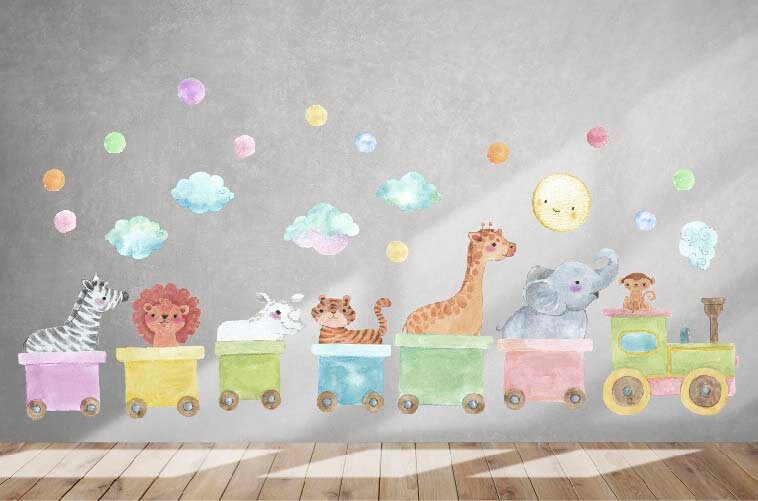 Train Wall Decals Nursery Stickers Jungle Animals Safari