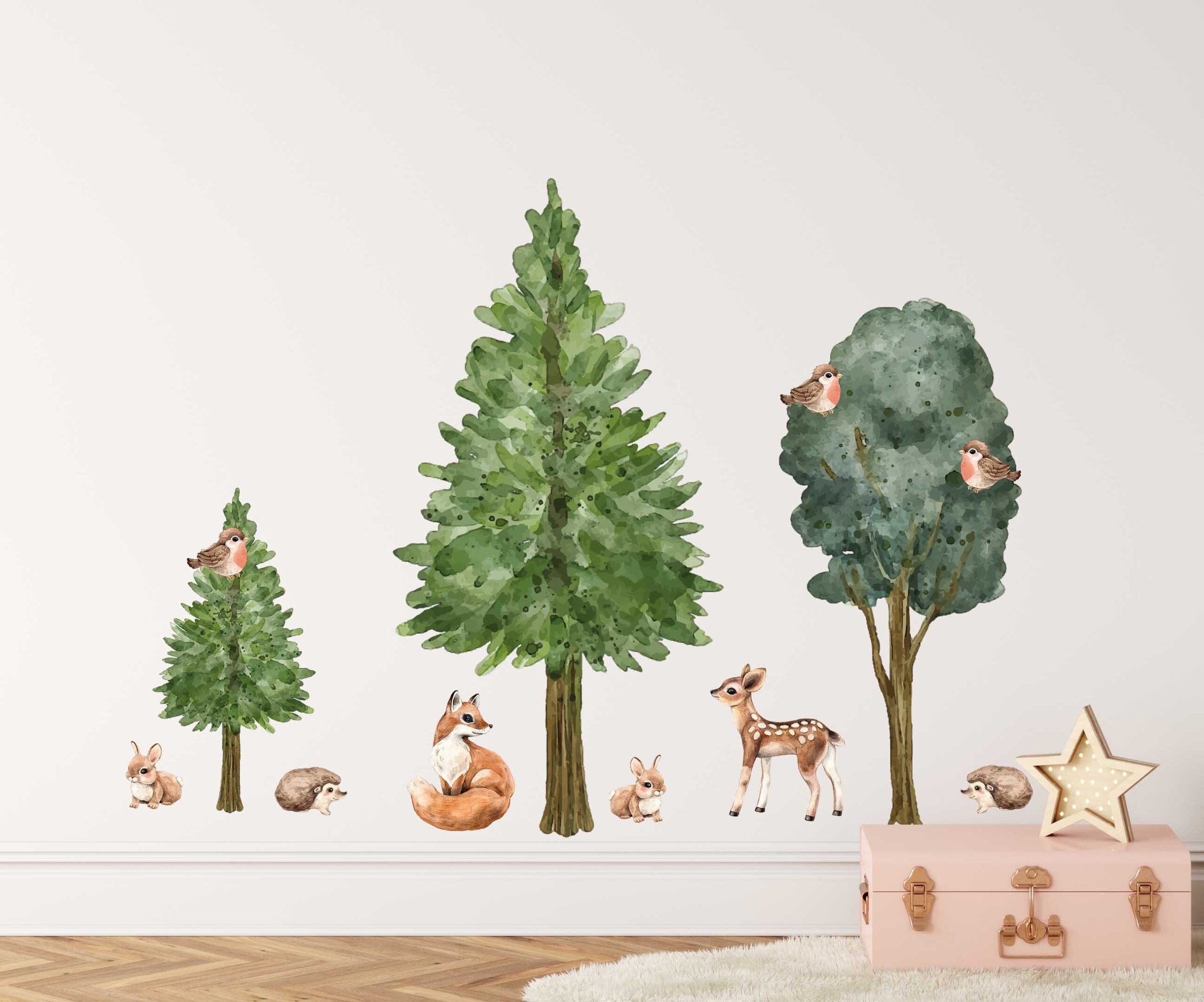 Tree Wall Decals Fir Pine Fox Deer Bunny Bird