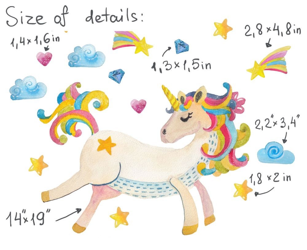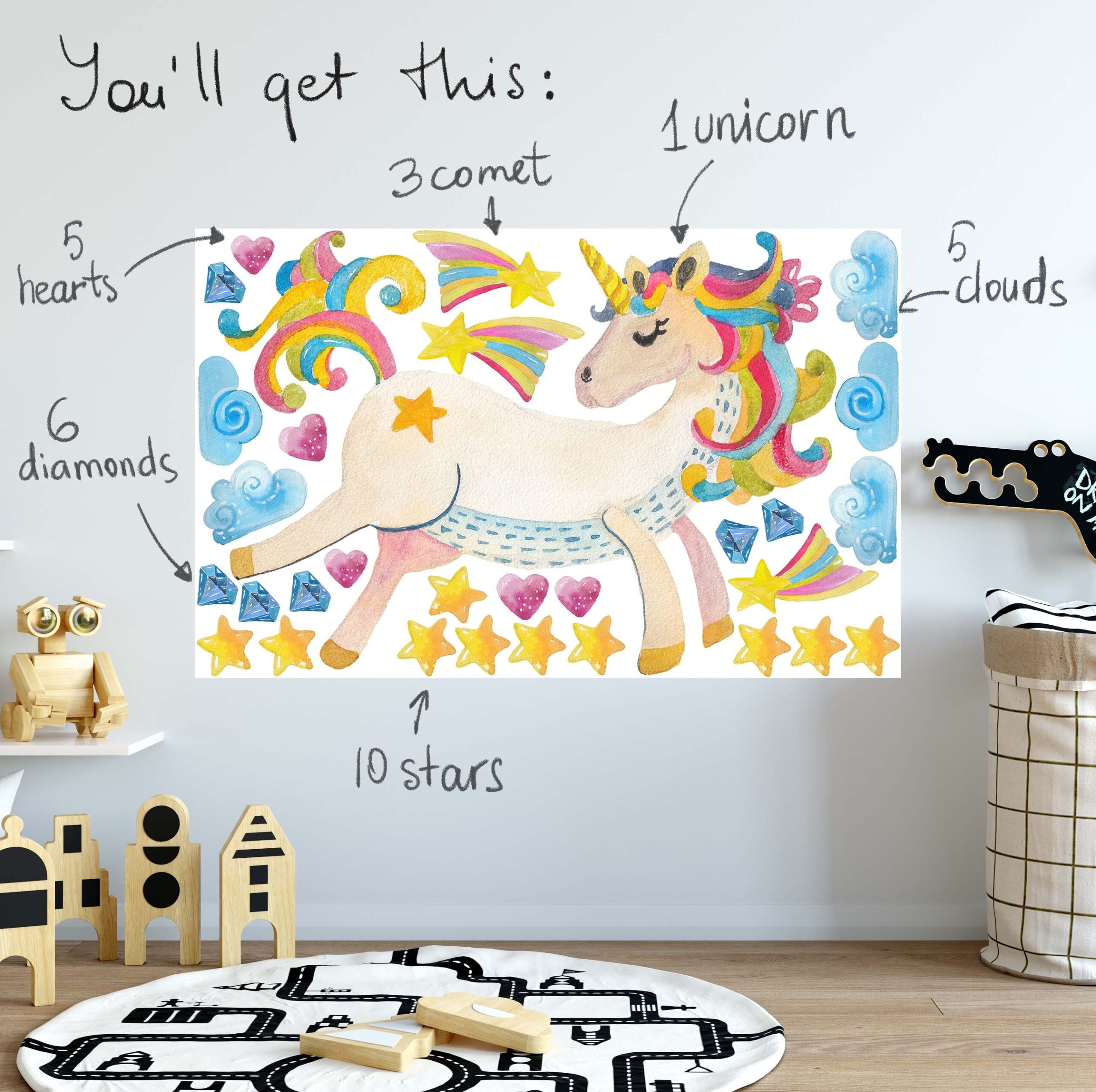 Unicorn Watercolor Horse Wall Decals – What’s Included