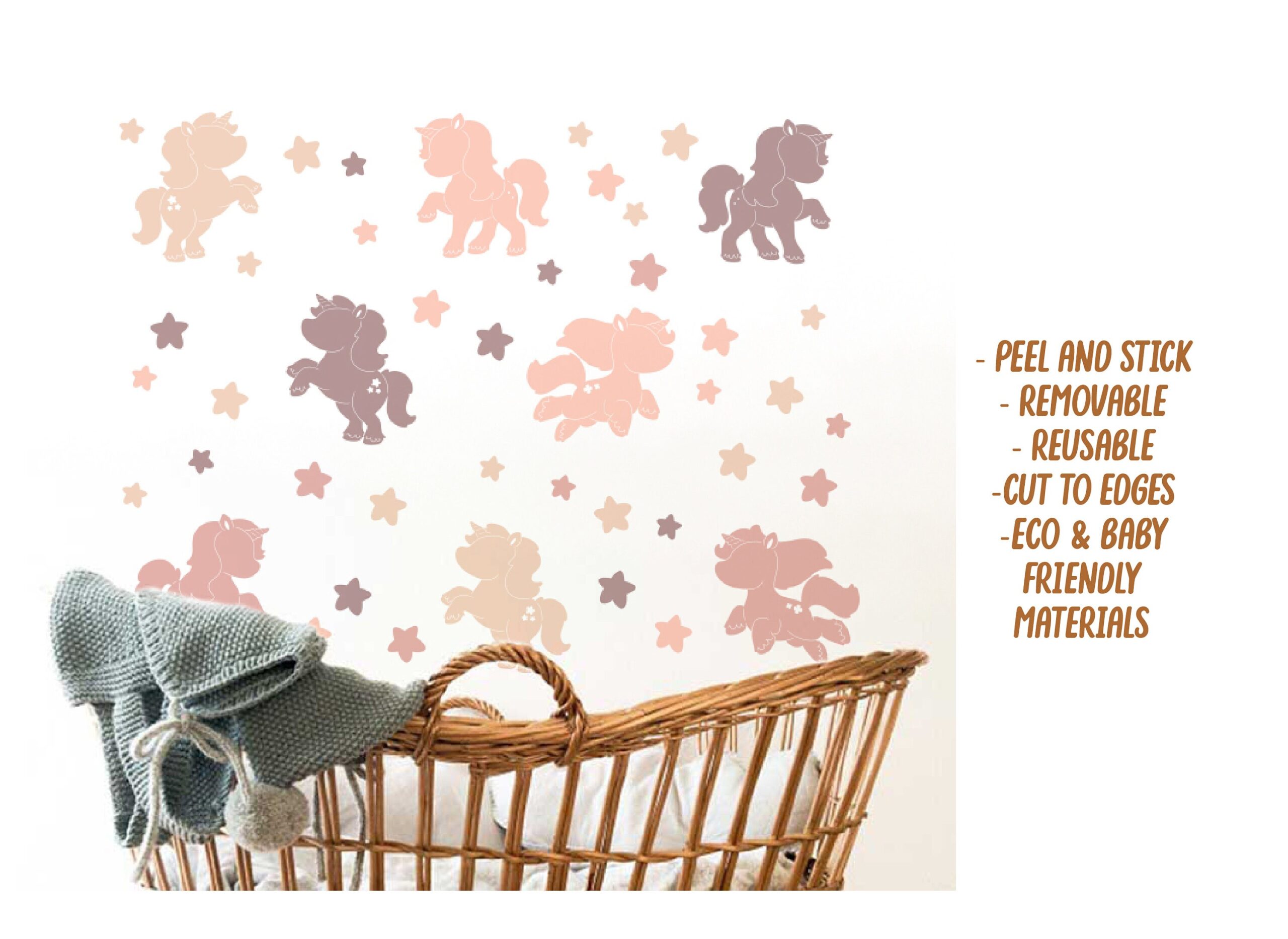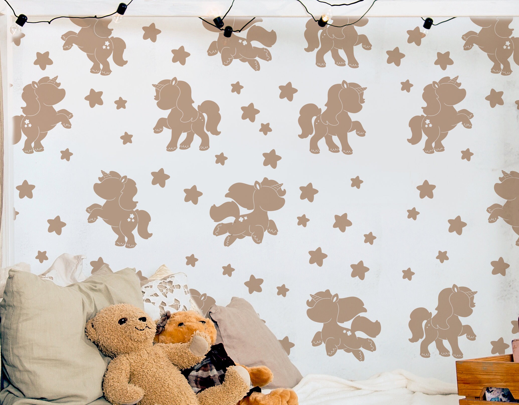 👶 Discover our unicorn pony horse wall decals — a beautiful design that instantly elevates any room. Furthermore, each individual piece can be placed wherever you like, so you can create a truly unique arrangement.