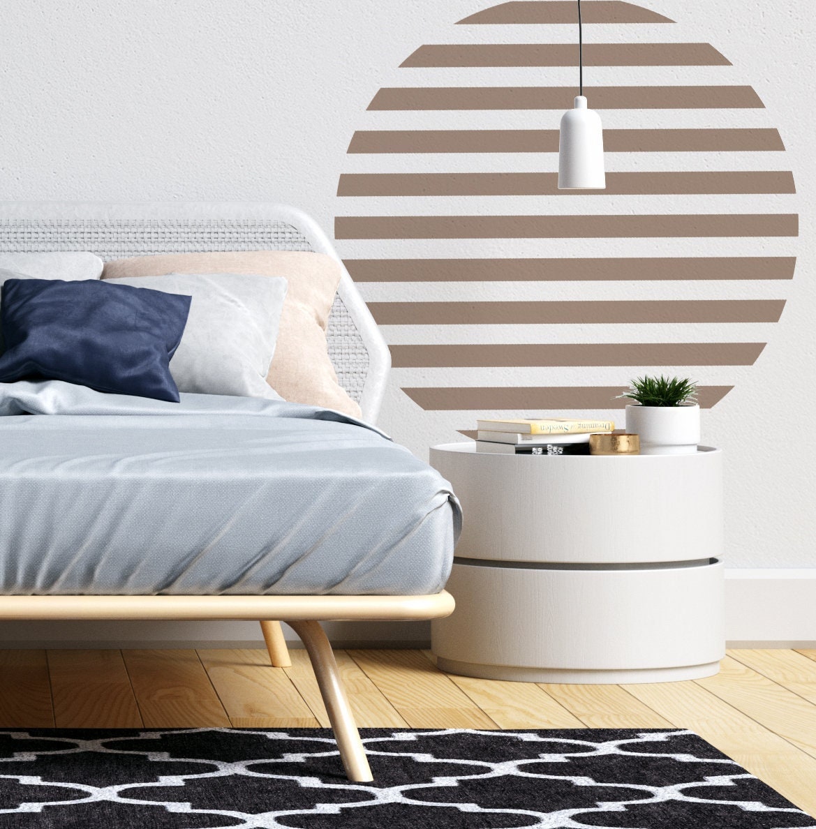 These circle scandi wall decals are pre-cut and ready to apply. In addition, detailed installation instructions are included with every order.