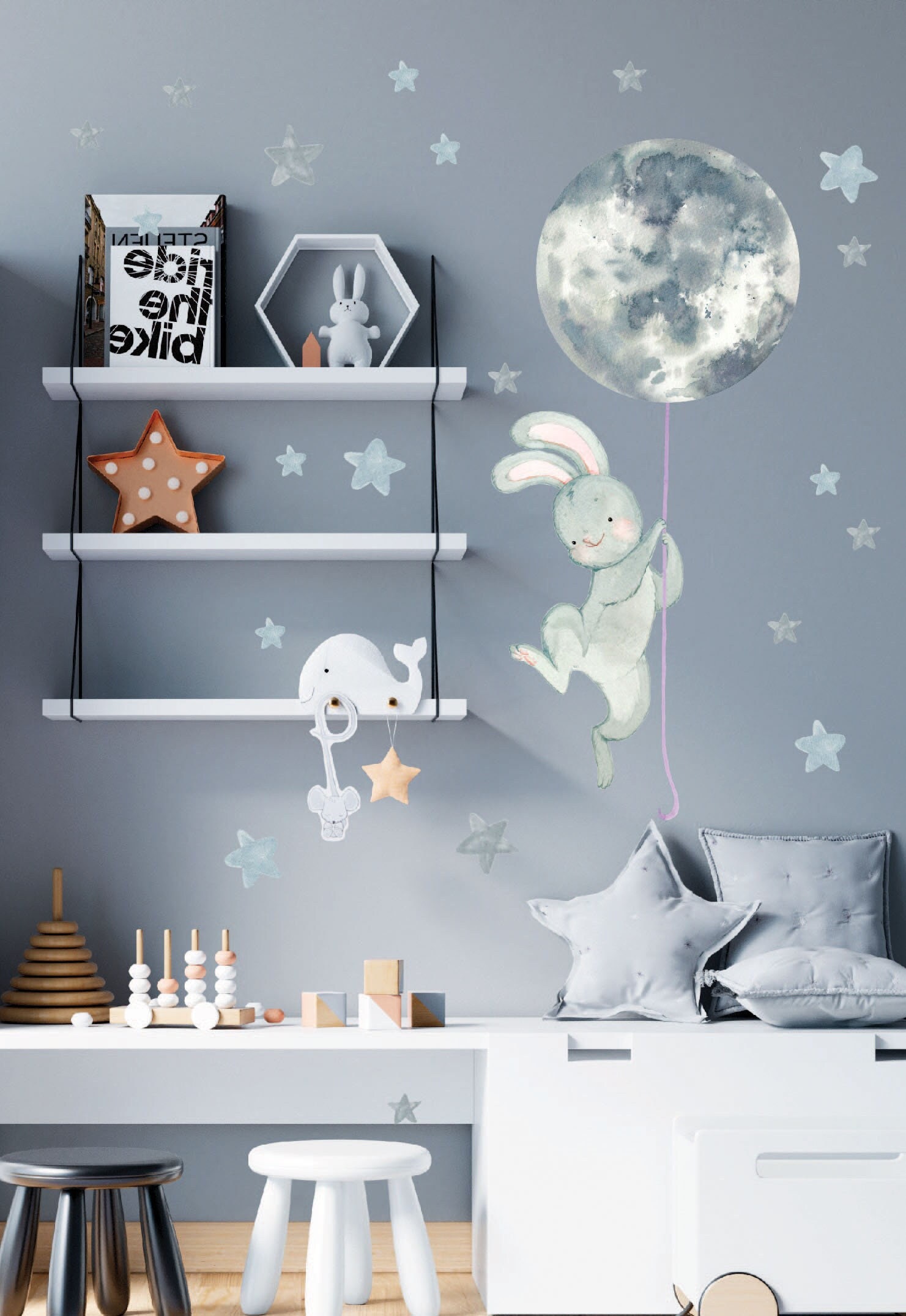 Moon and Stars Decals, Bunny Wall Decals