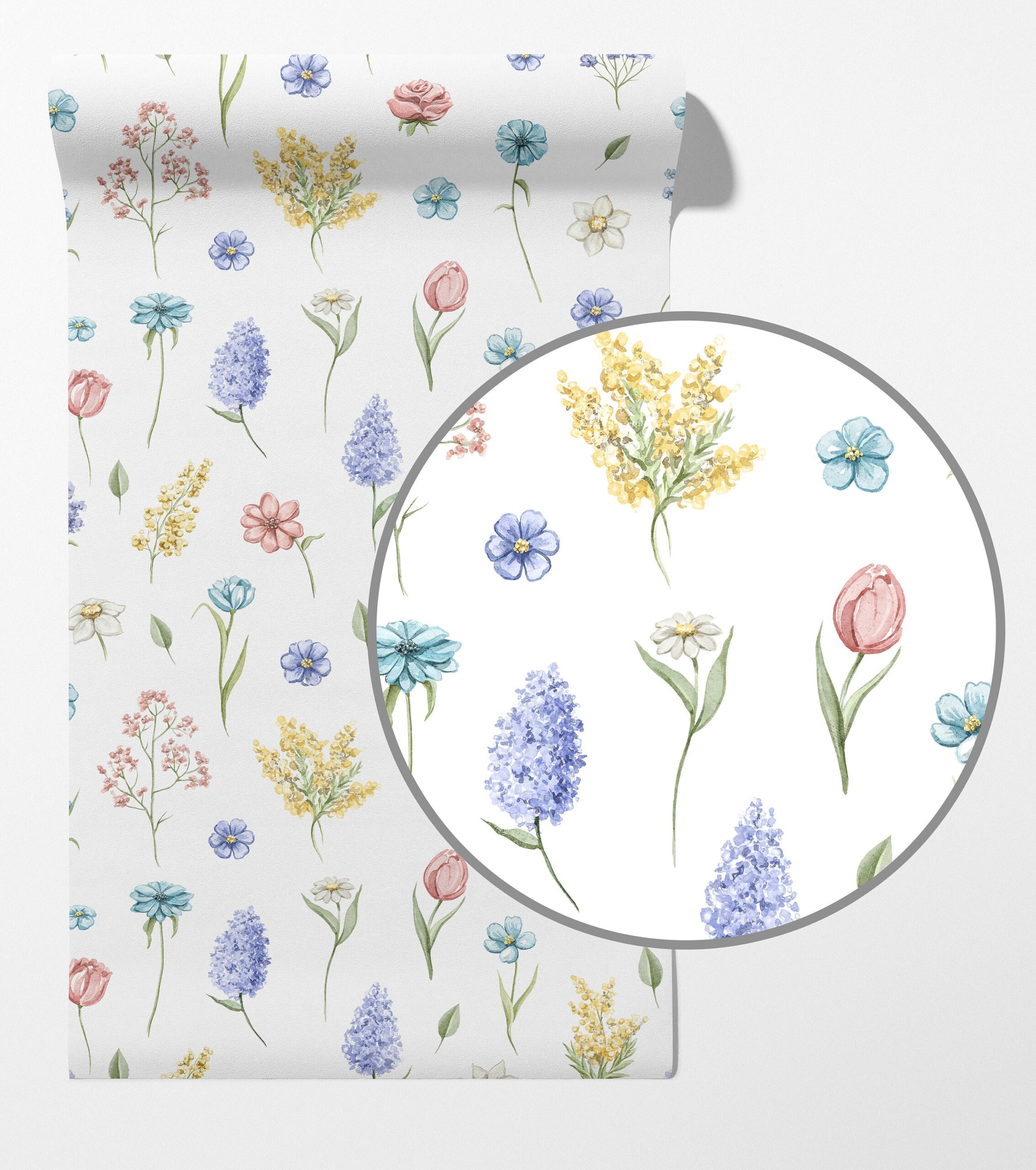 These watercolor floral wallpaper wall decals are pre-cut and ready to apply. In addition, detailed installation instructions are included with every order.