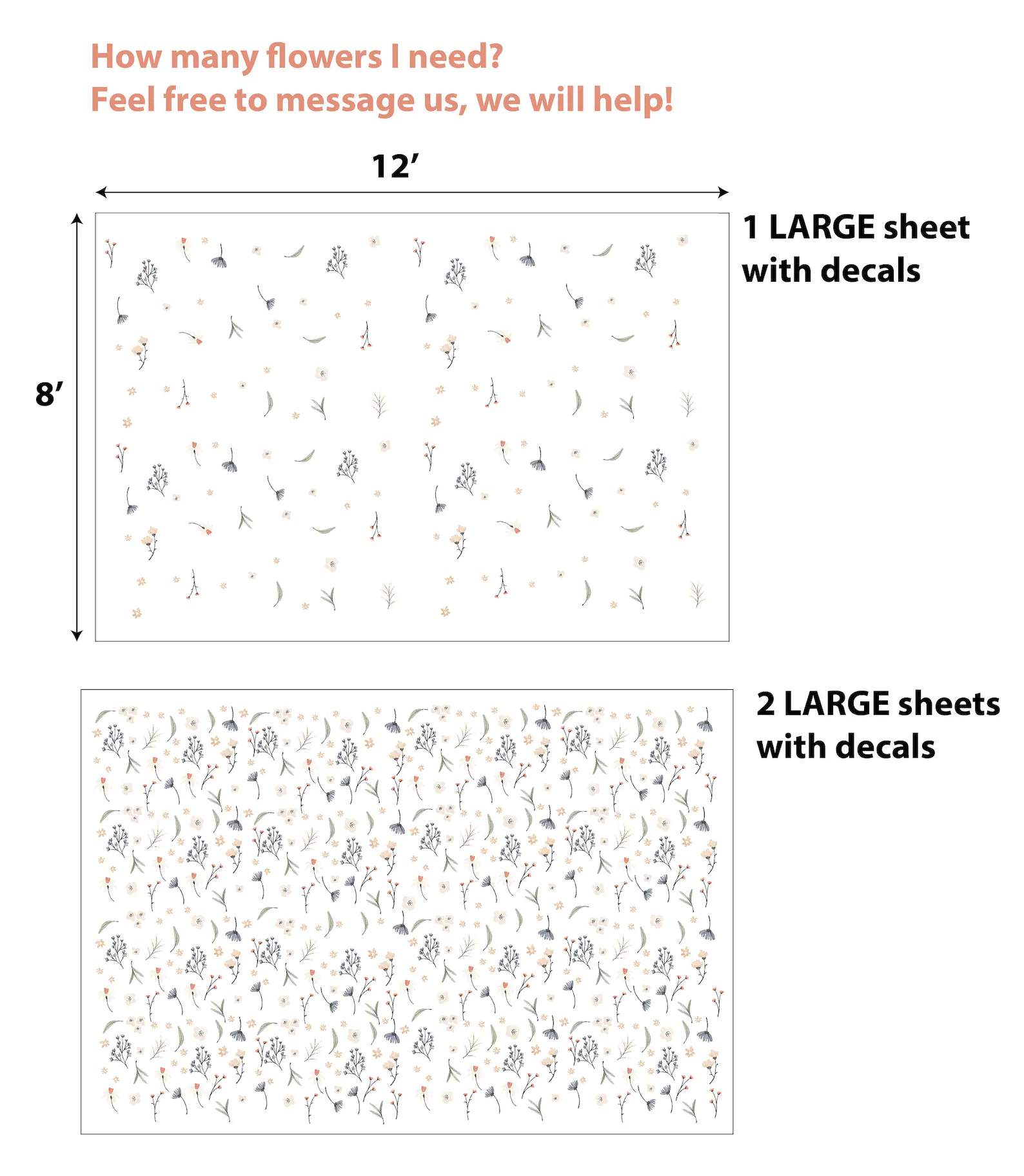 These wildflowers greenery floral wall decals are pre-cut and ready to apply. In addition, detailed installation instructions are included with every order.