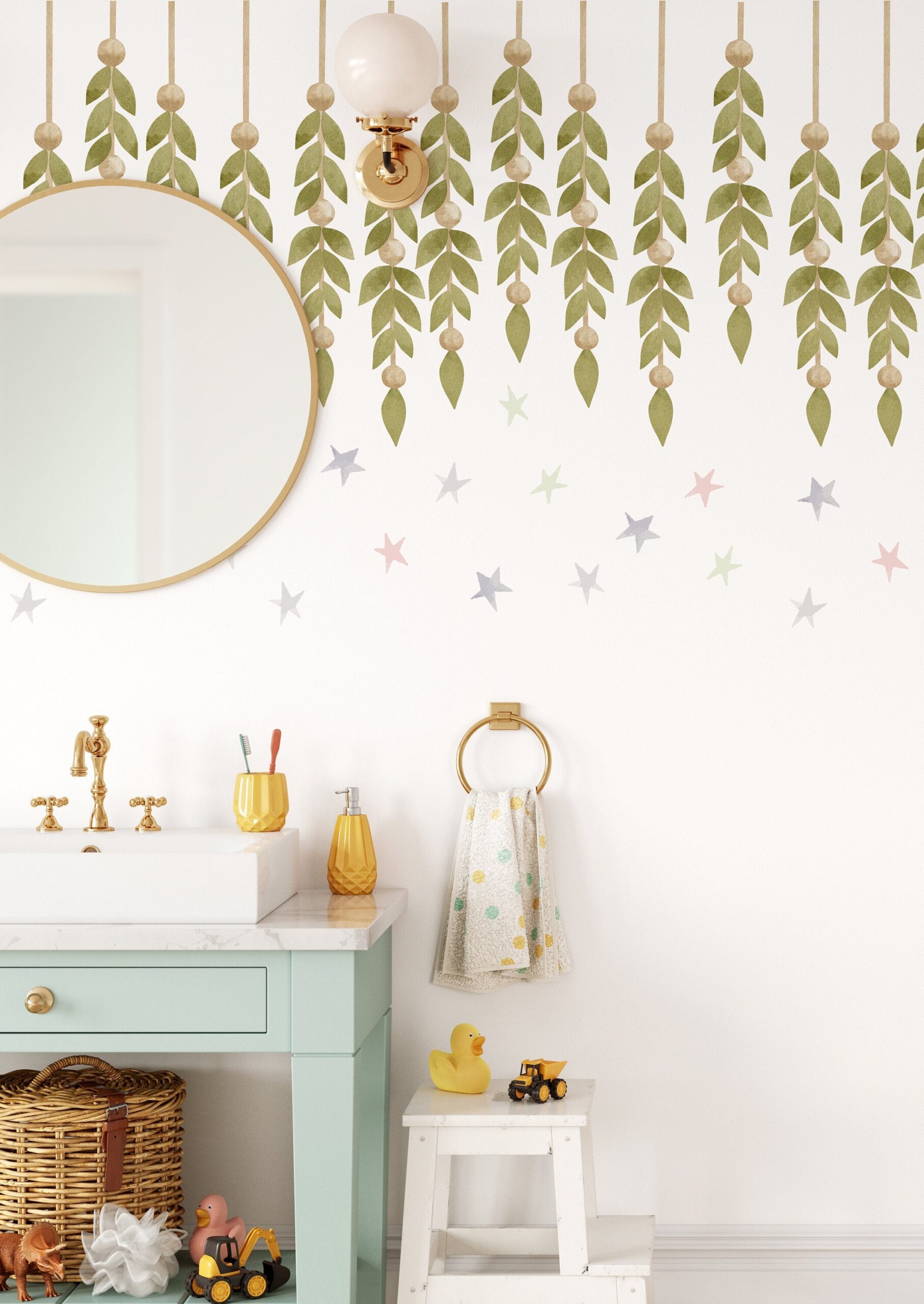 Watercolor Greenery Wall Decals: Boho Nursery Decor, Stars & Hanging Leaves LF500