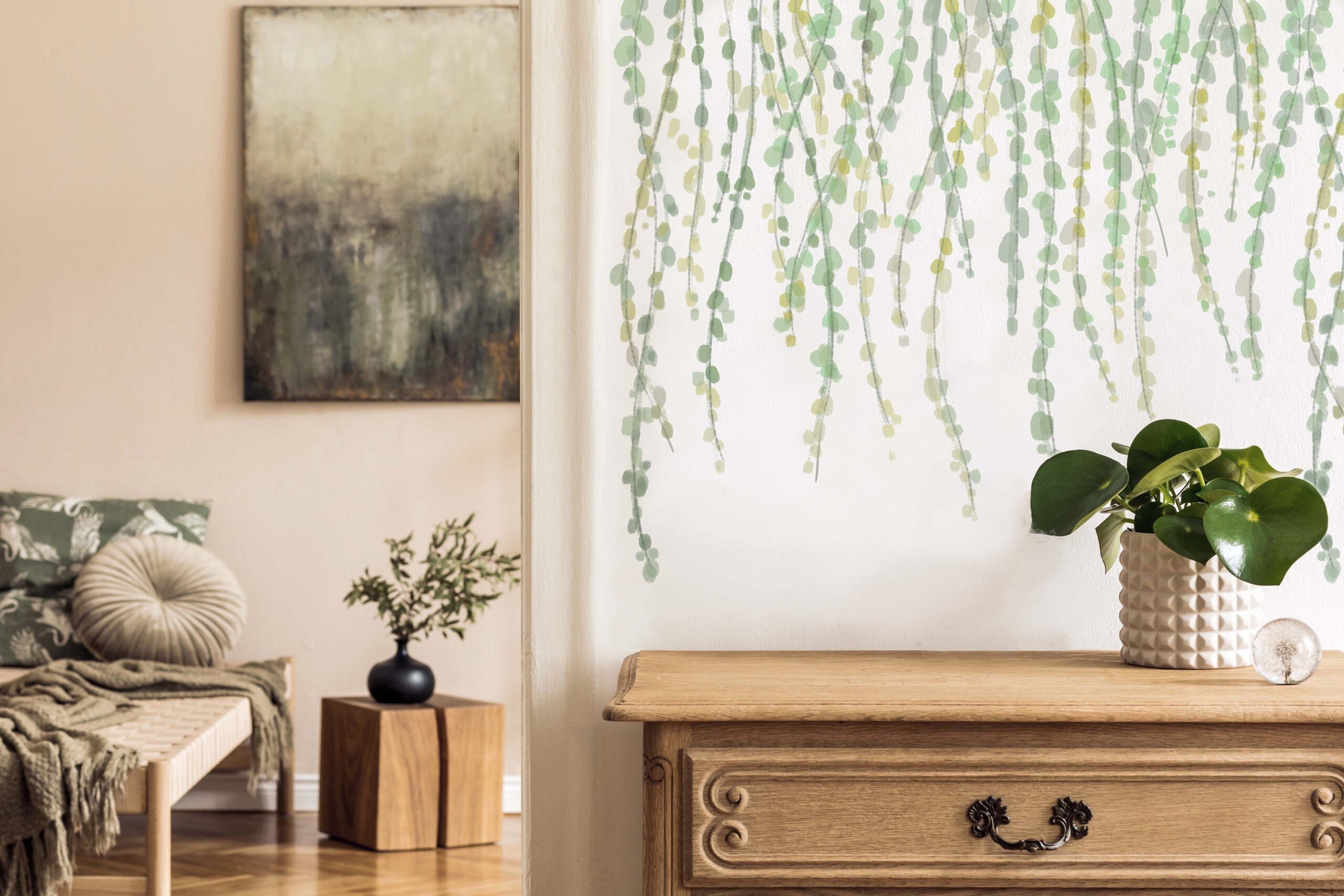 Watercolor Greenery Wallpaper Removable Leaves liana Peel and Stick Wall paper