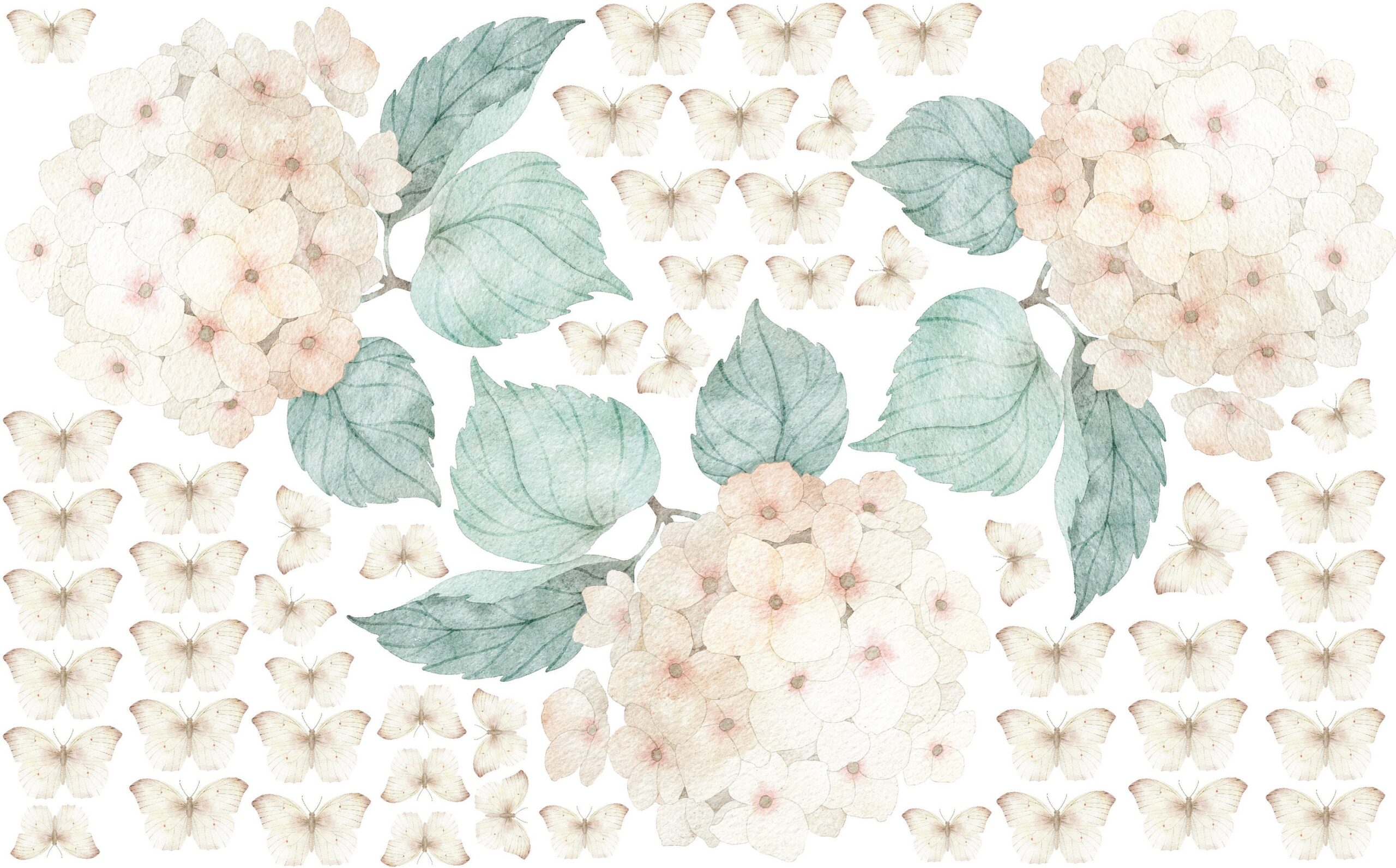 Watercolor Hydrangea Butterfly Wall Decals – What’s Included