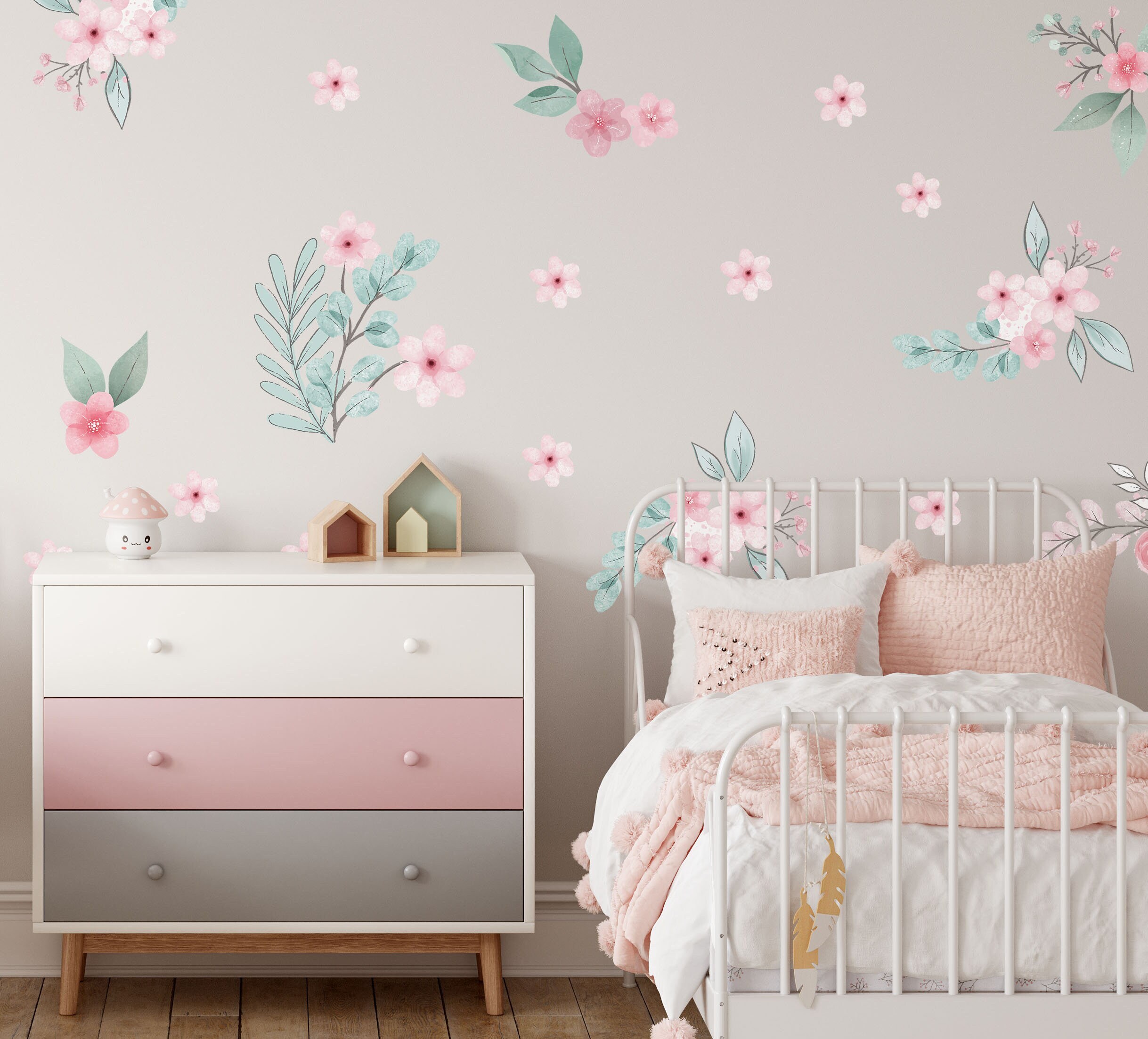 Watercolor Flower Nursery Wall Decals Greenery Stickers Wild Field Floral Room Nature Decoration