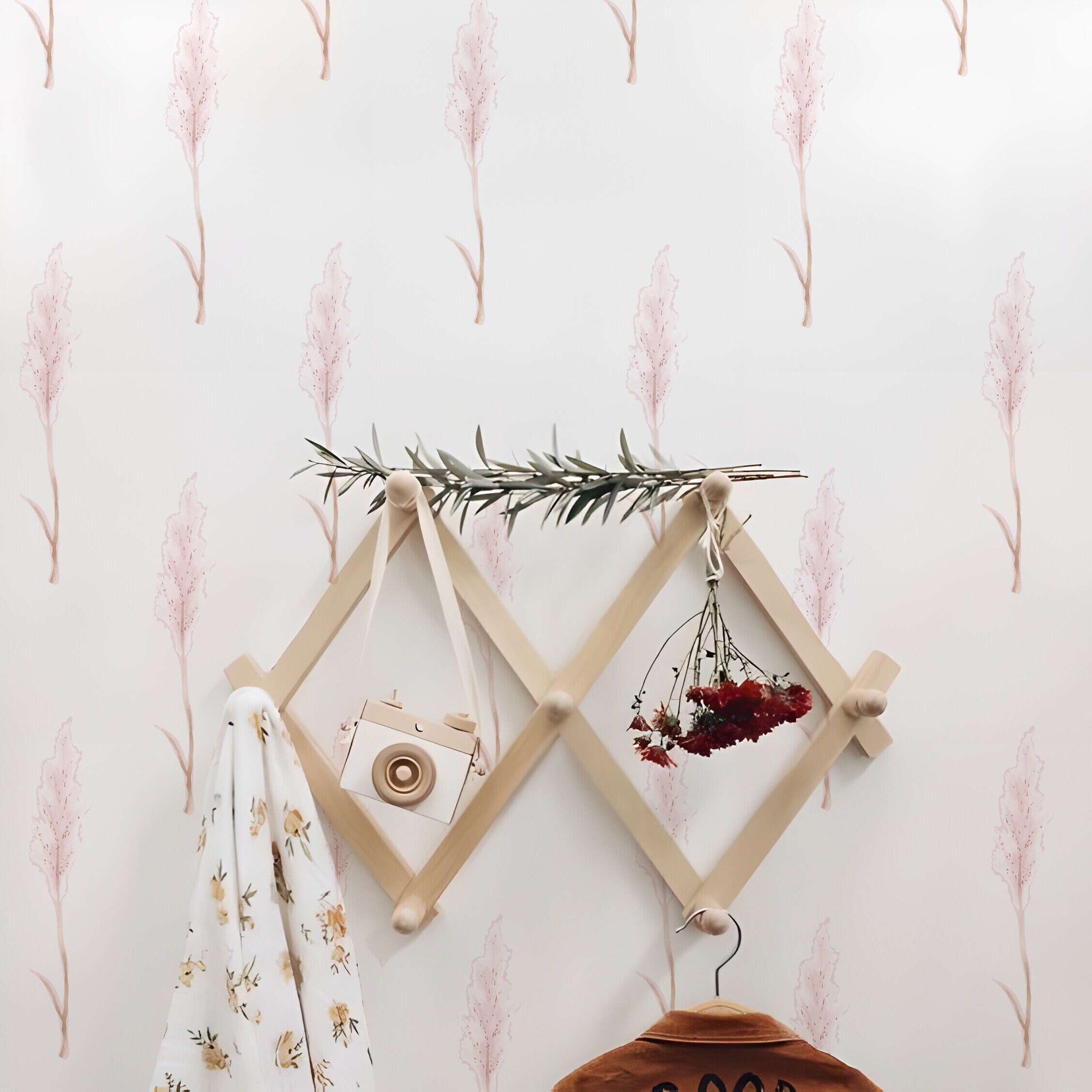 Watercolor Pink Flower Wall Decals Nature Heather Sticker Boho Nursery Leaves Flowers Room Decoration