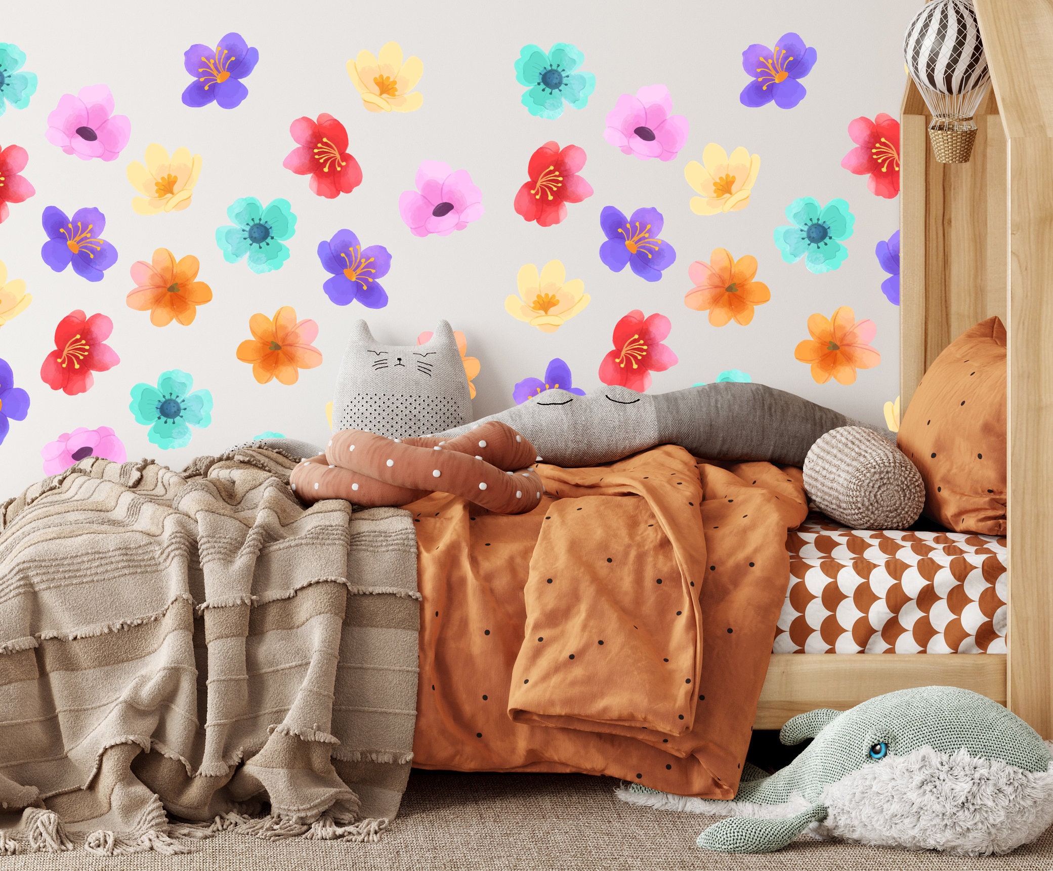 Watercolor Rainbow Flower Wall Decals: Removable Nursery Decor