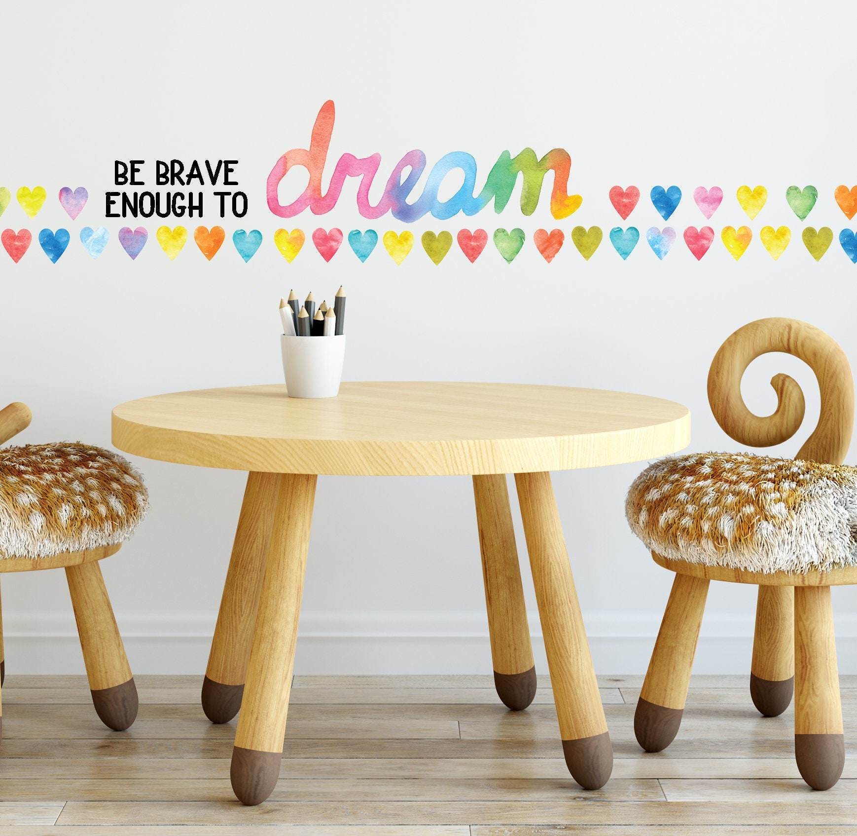 Be Brave to Dream Rainbow Wall Decal – Watercolor Heart Wall Sticker