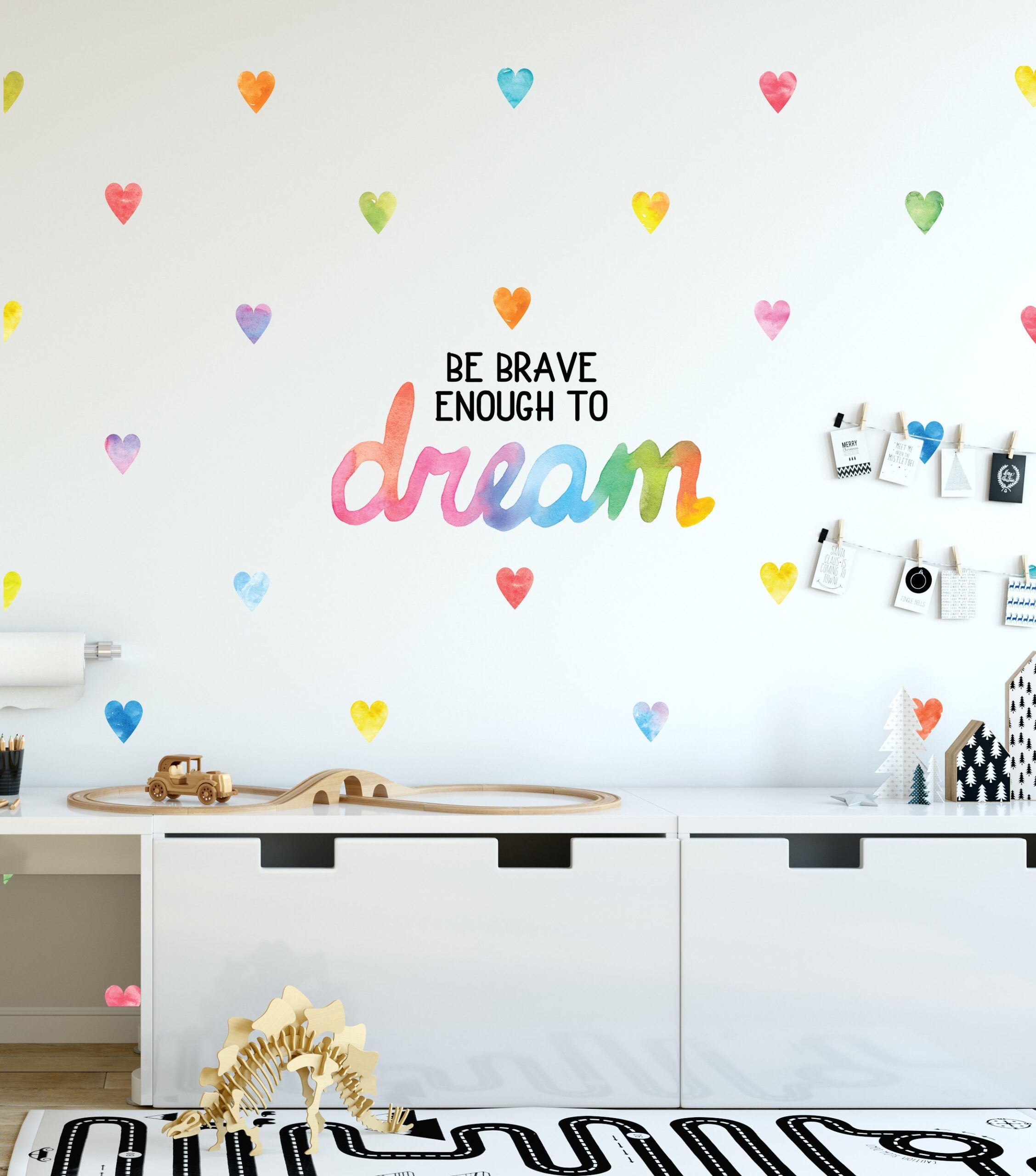 👶 Discover our watercolor rainbow heart wall decals — a beautiful design that instantly elevates any room. Furthermore, each individual piece can be placed wherever you like, so you can create a truly unique arrangement.