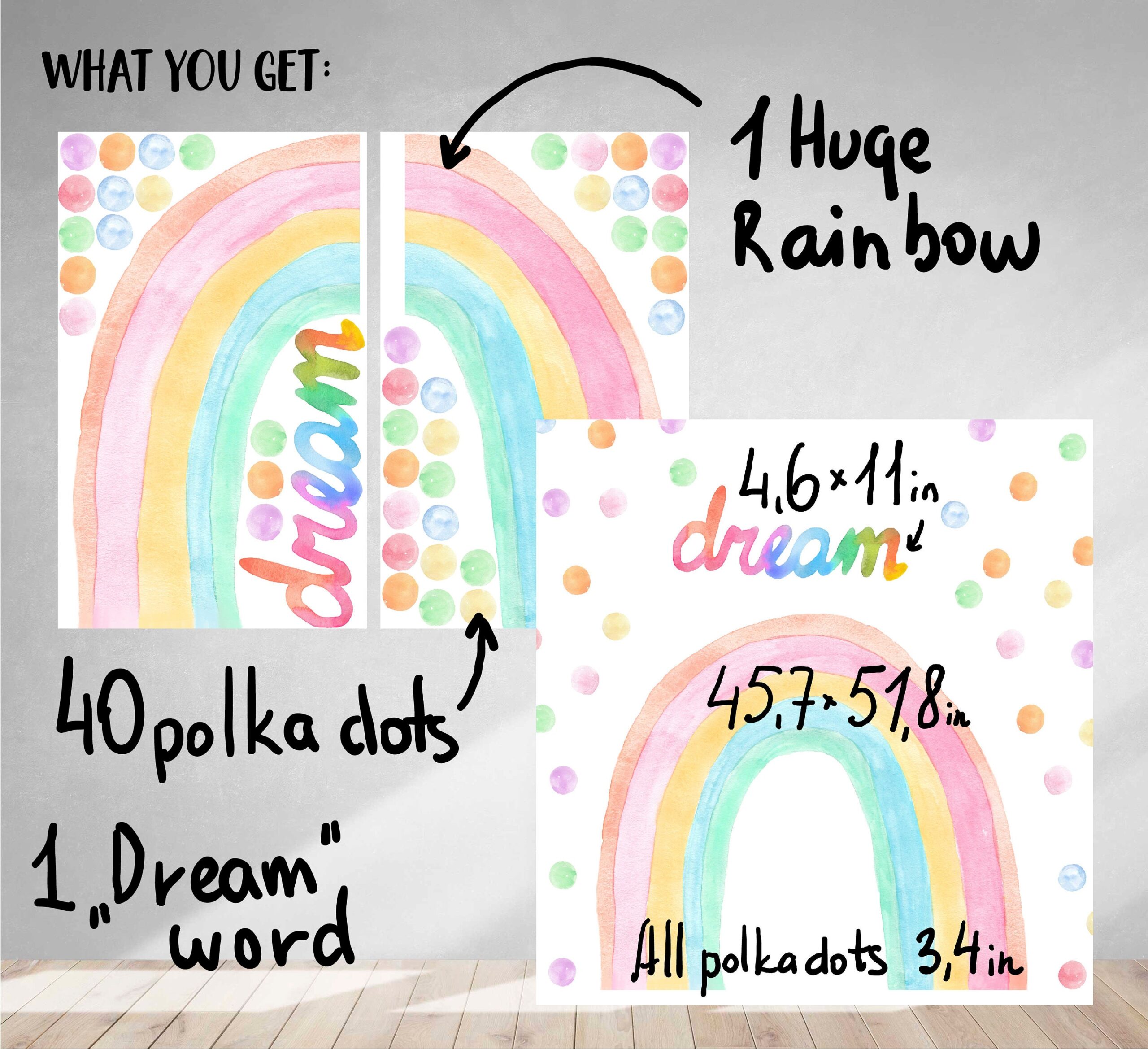 Watercolor Rainbow Boho Wall Decals – What’s Included