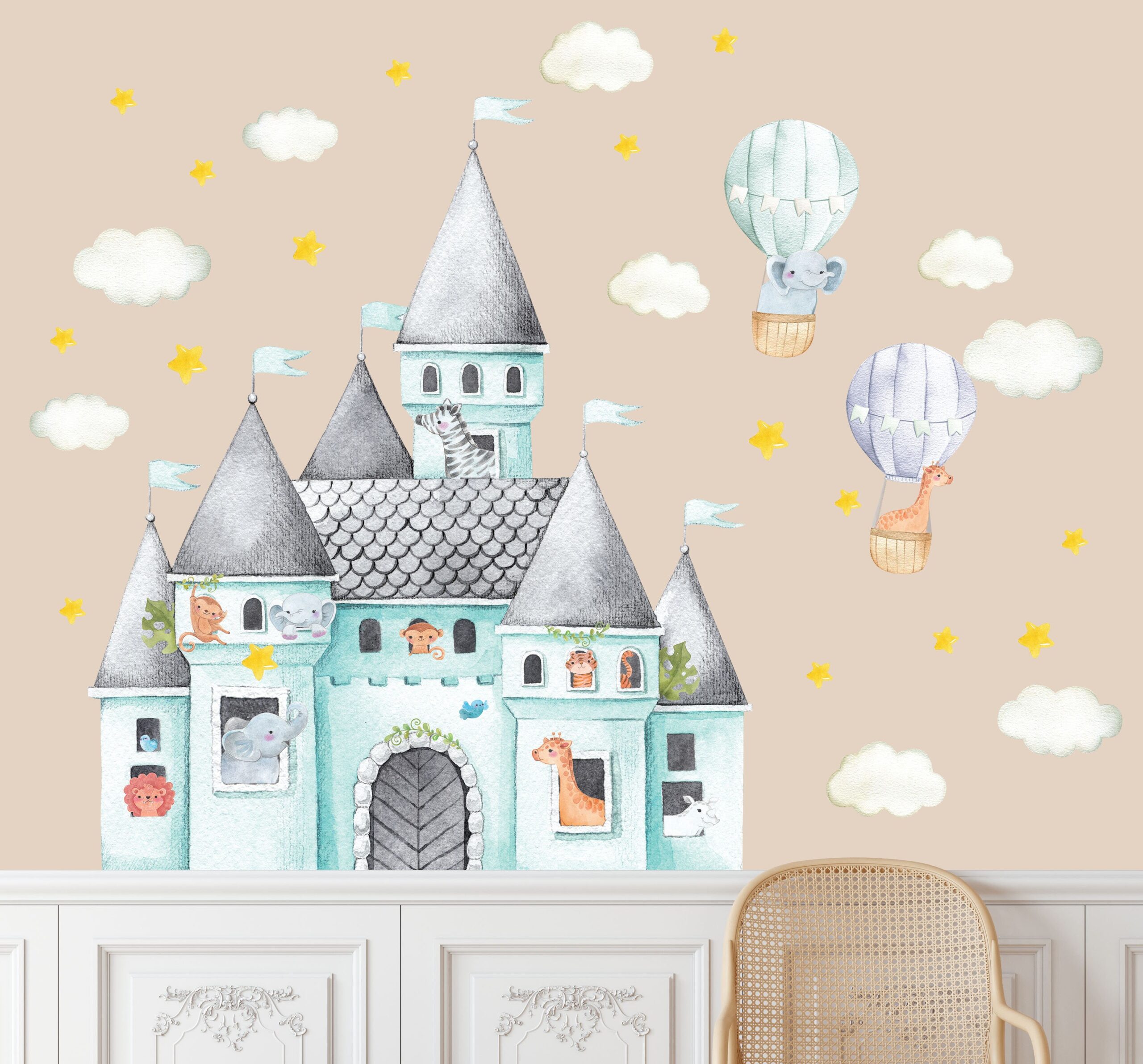 Watercolor Safari Castle Wall Decal | Removable Nursery Decor LF165