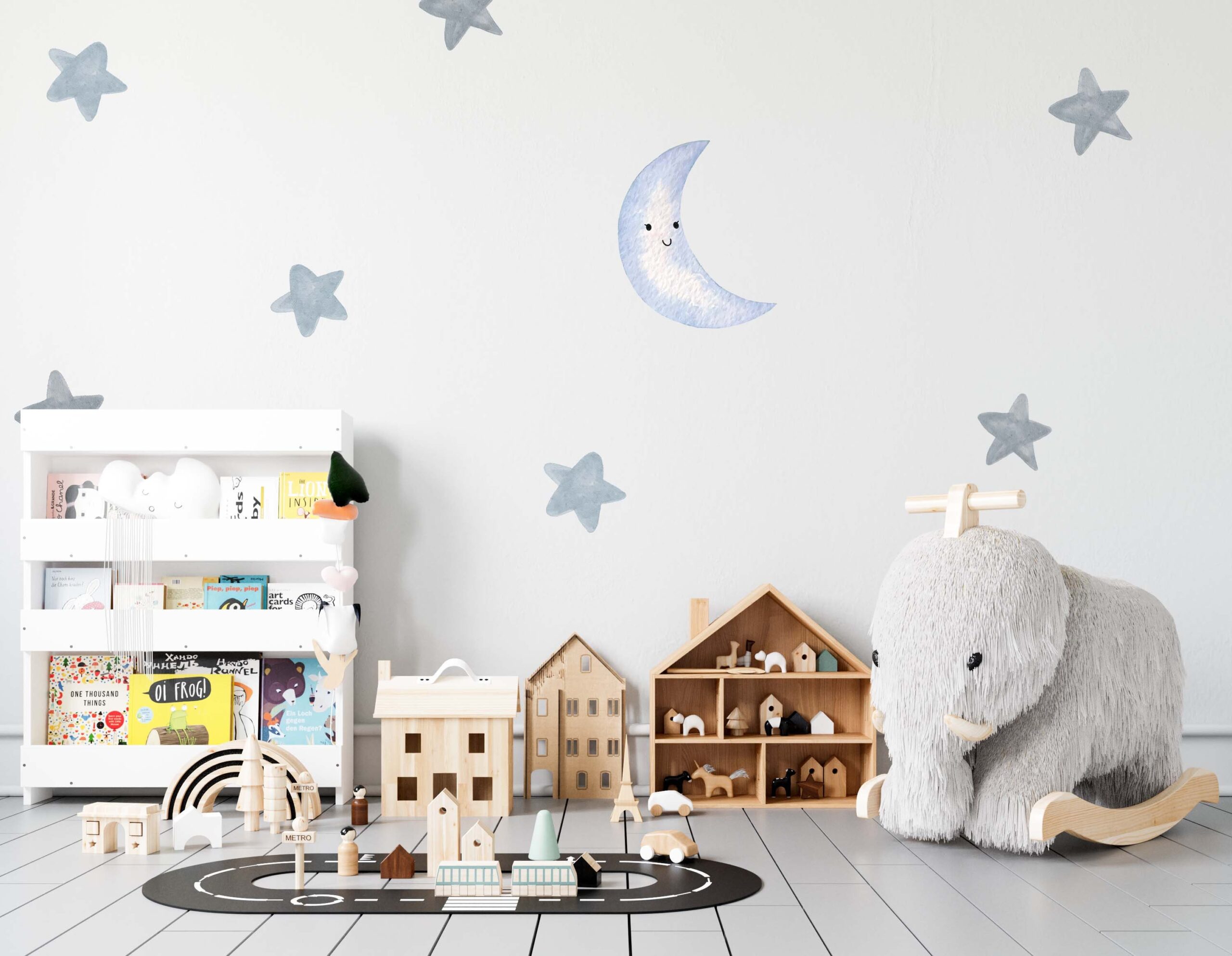 Watercolor Star and Moon Wall Decals – Small or Large Set