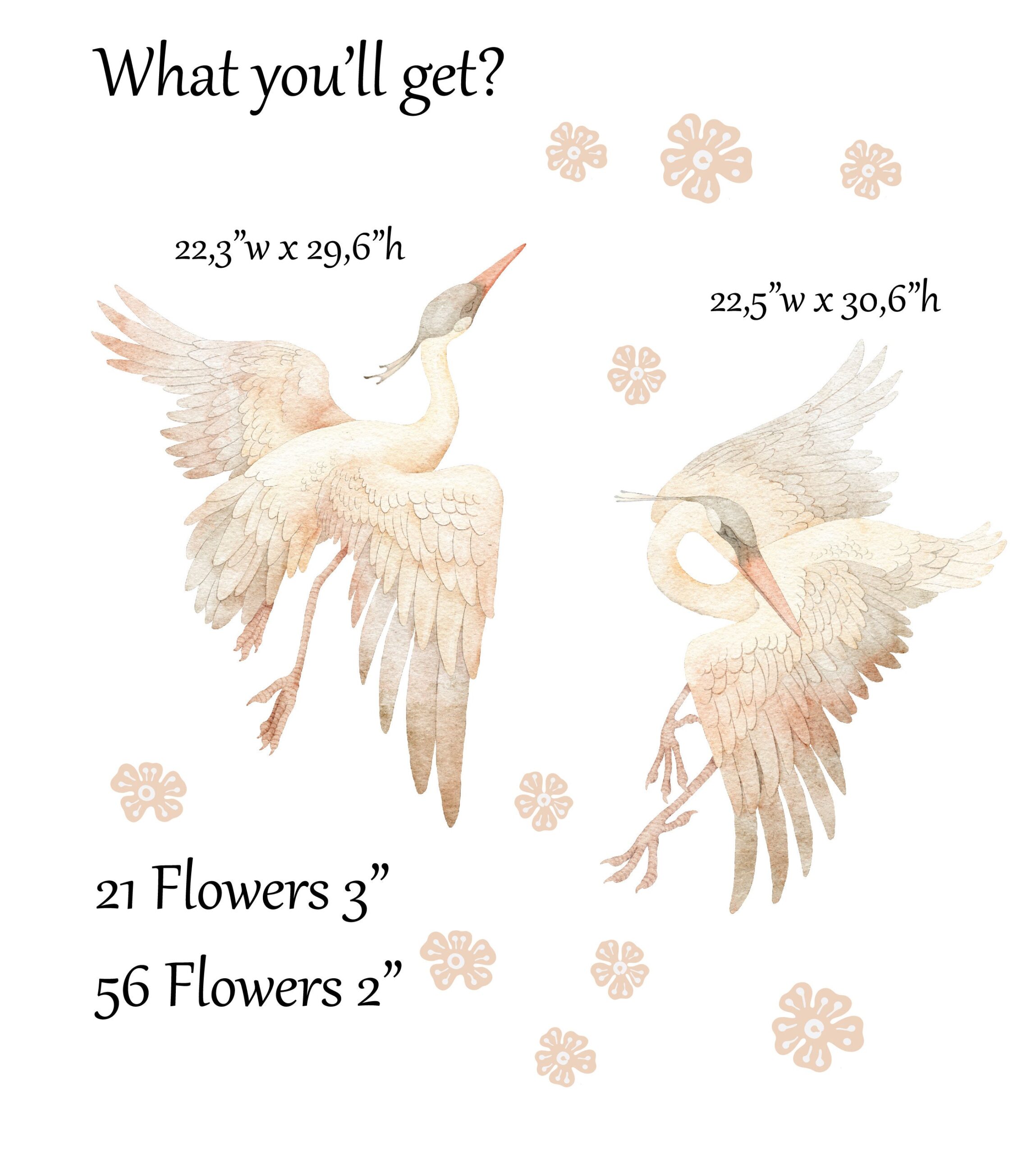 These watercolor stork pink wall decals are pre-cut and ready to apply. In addition, detailed installation instructions are included with every order.