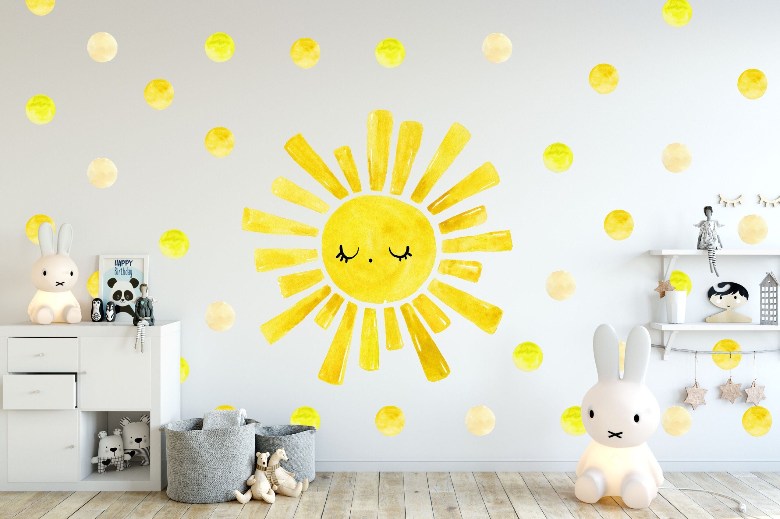 Watercolor Sun Wall Decal Sticker, Yellow Polka Dots Nursery Room Decor LF019