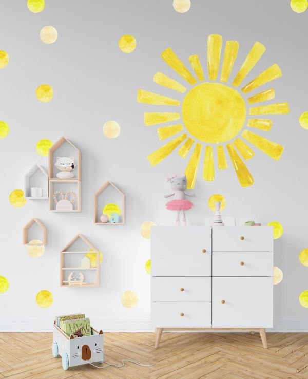 👶 Discover our watercolor sun yellow wall decals — a beautiful design that instantly elevates any room. Furthermore, each individual piece can be placed wherever you like, so you can create a truly unique arrangement.