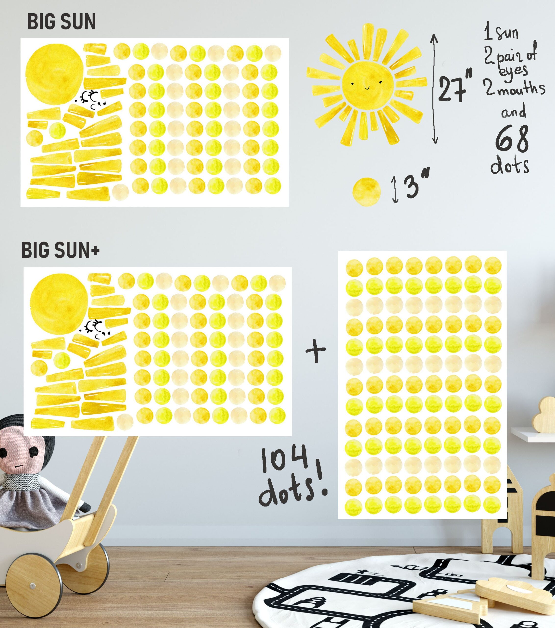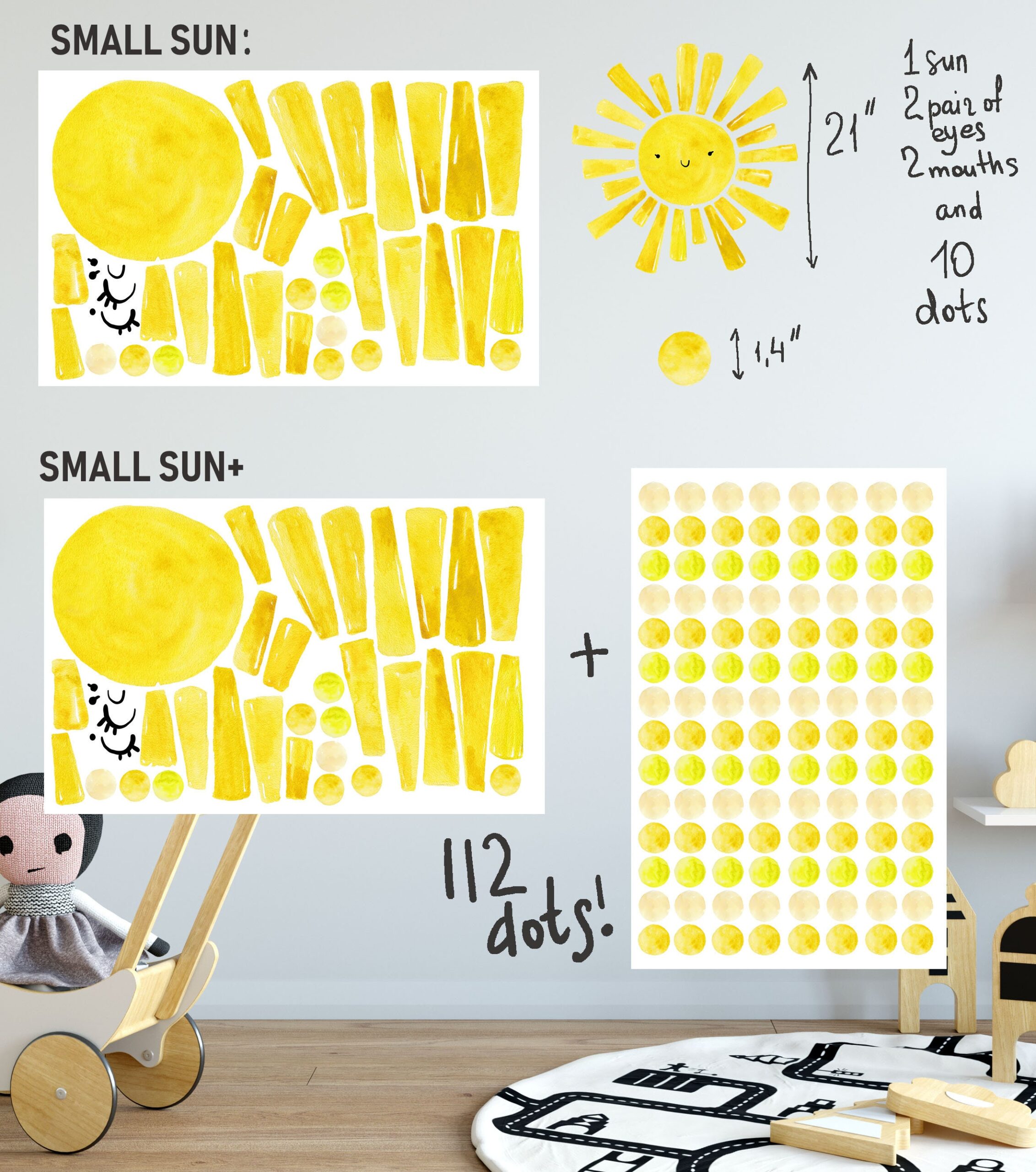 Watercolor Sun Yellow Wall Decals – What’s Included