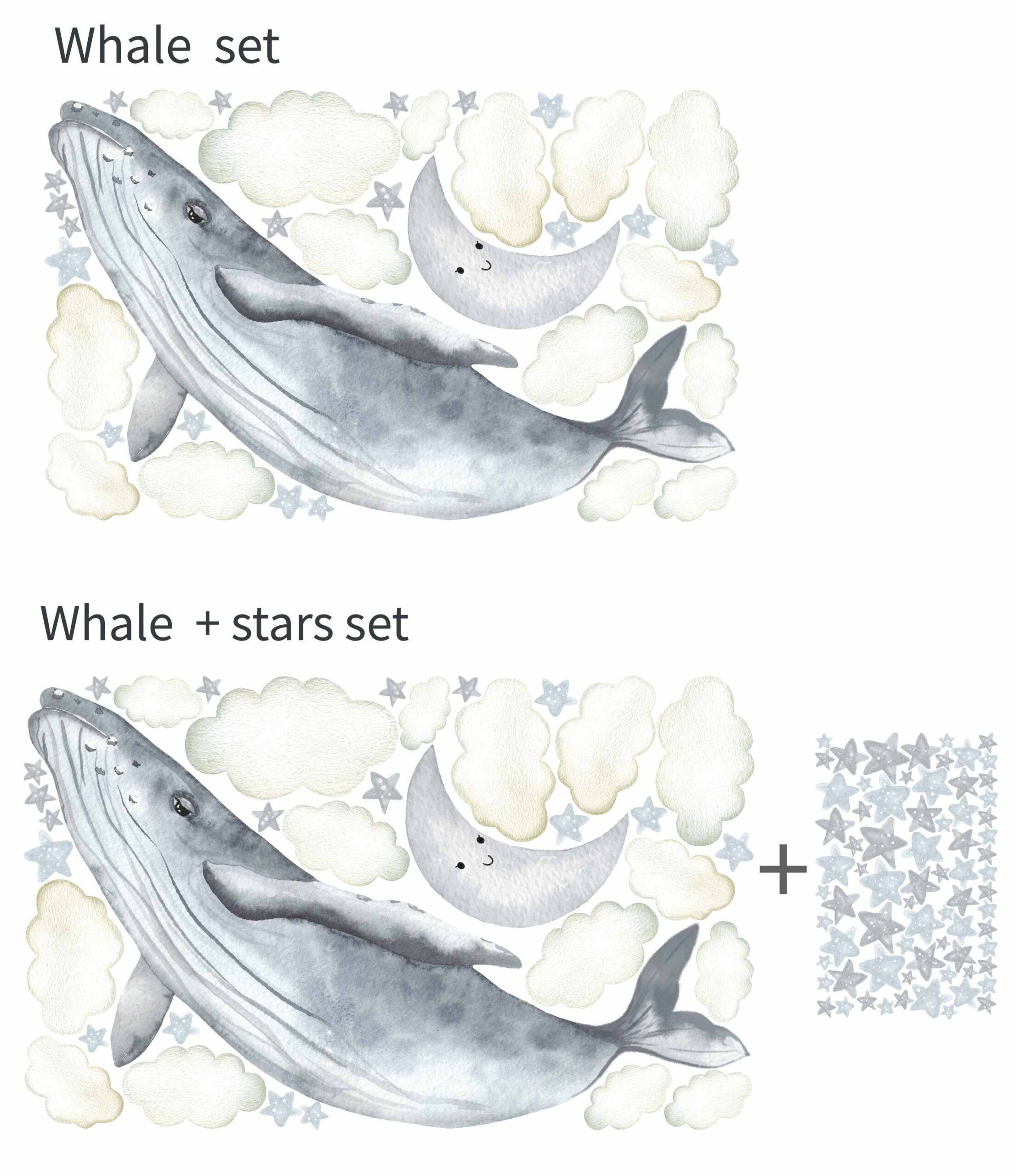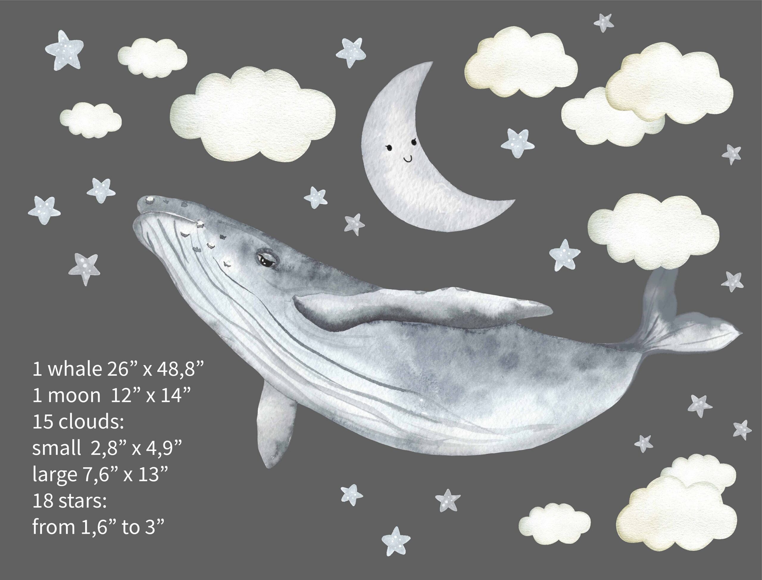 Whale Clouds Stars Wall Decals – What’s Included